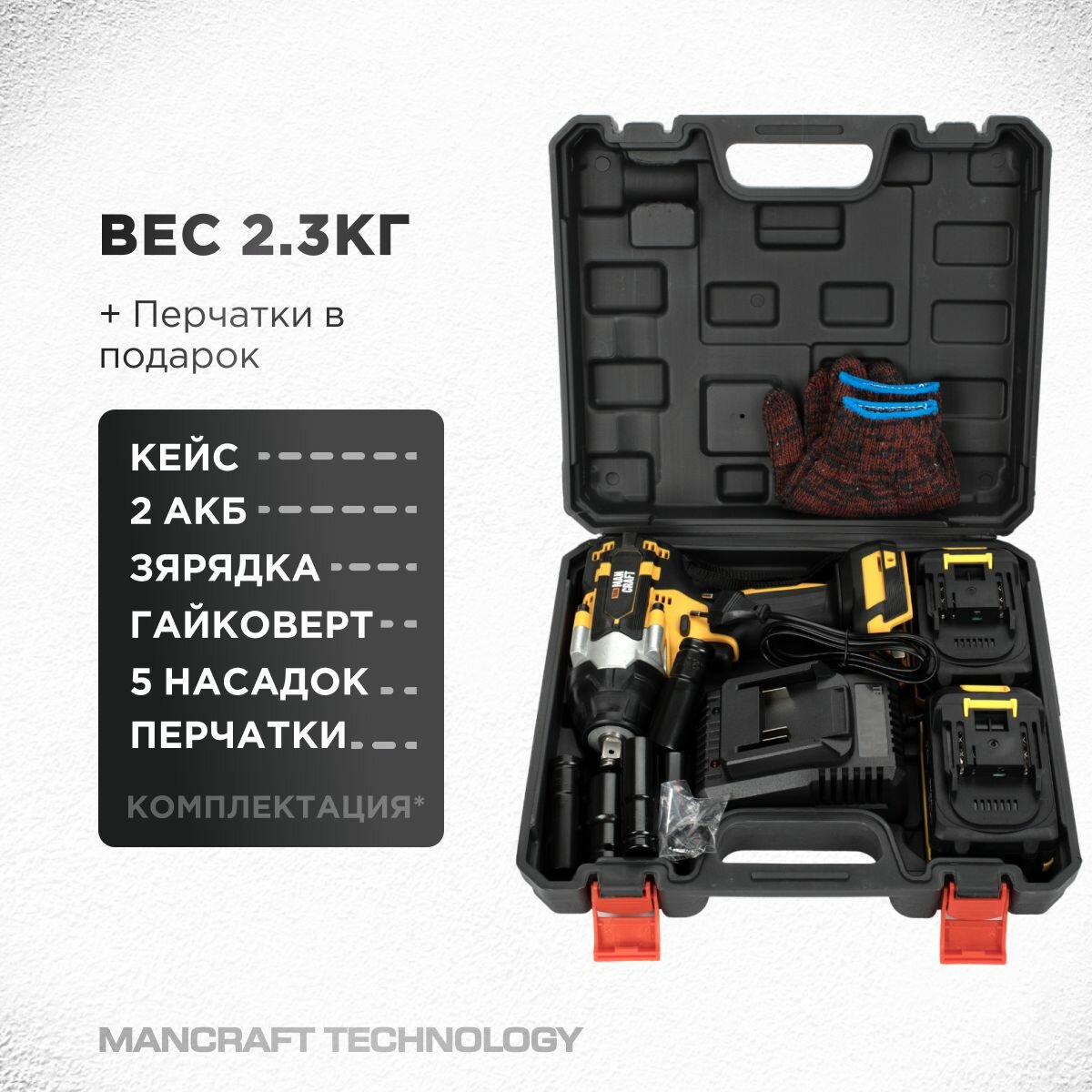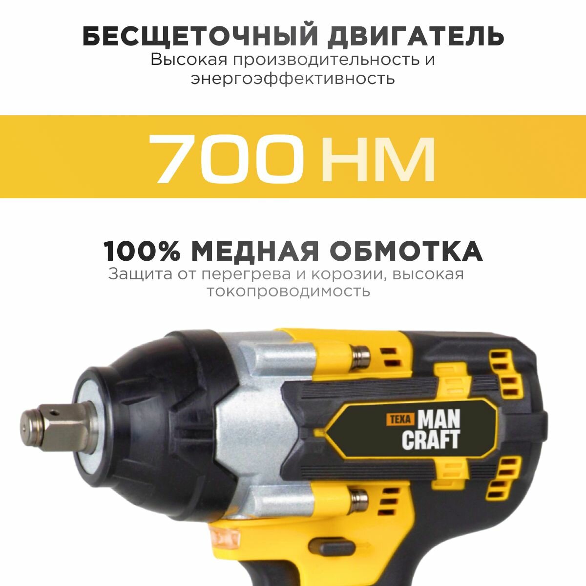 Гайковерт аккумуляторный ударный бесщеточный мощный MANCRAFT 700 Нм с 2 акк по 4 Ah с Biturbo двигателем. интересное: