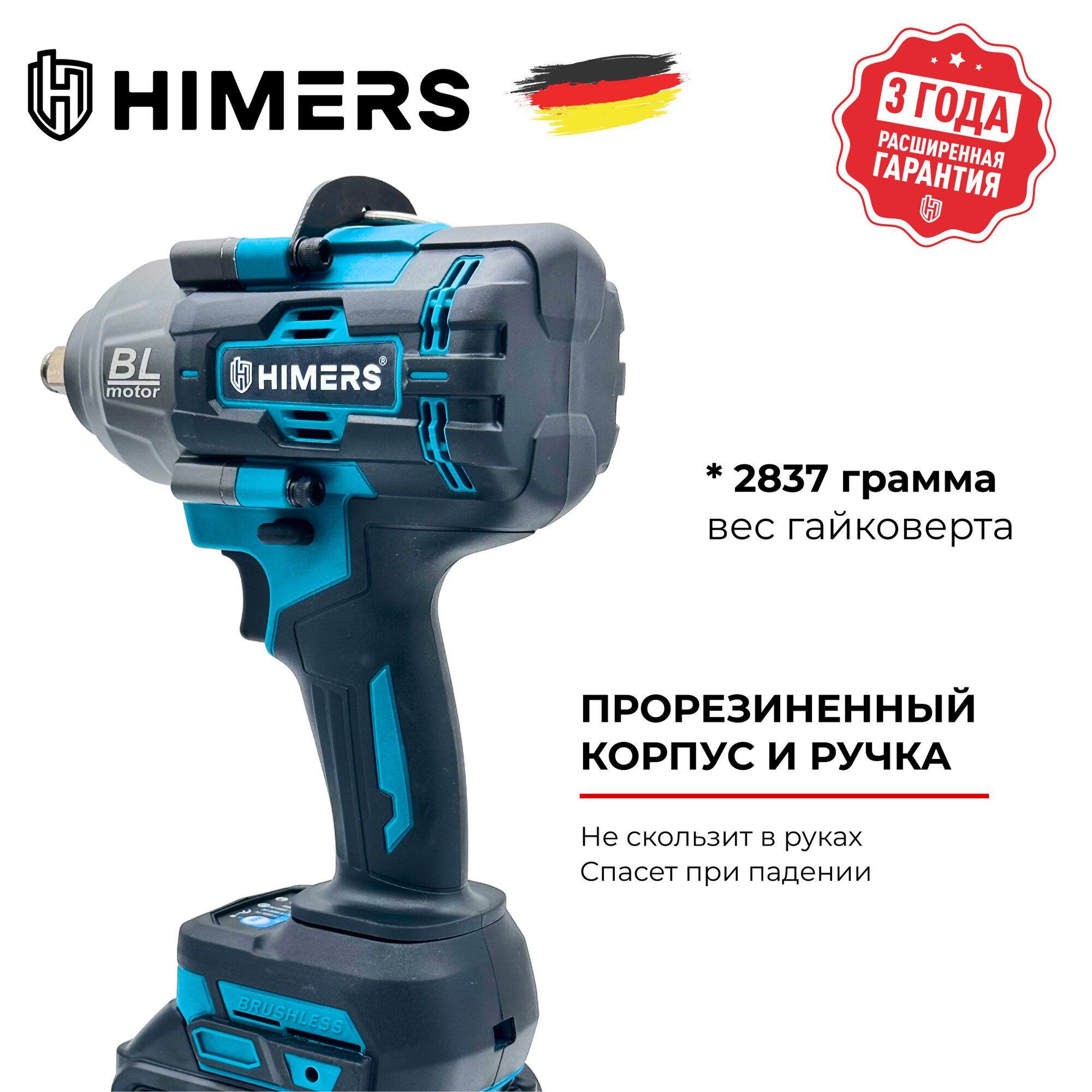 890 Н.М. Ударный бесщеточный гайковерт HIMERS DMT890B аккумуляторный 24V, 2 АКБ по 6 А.ч., Кейс / для закручивания, 24в, квадрат 1/2