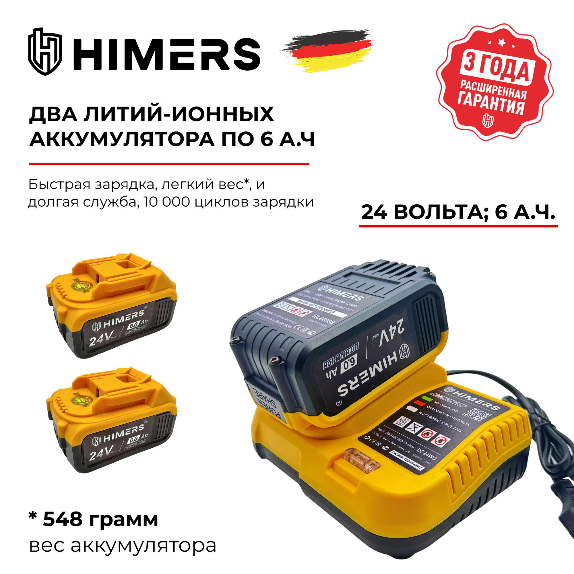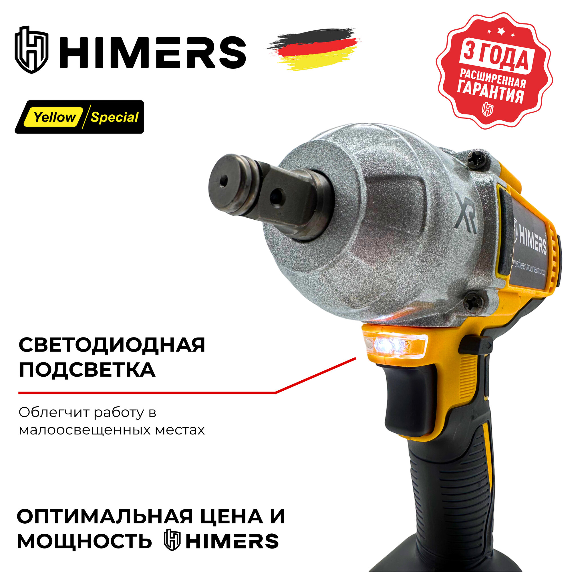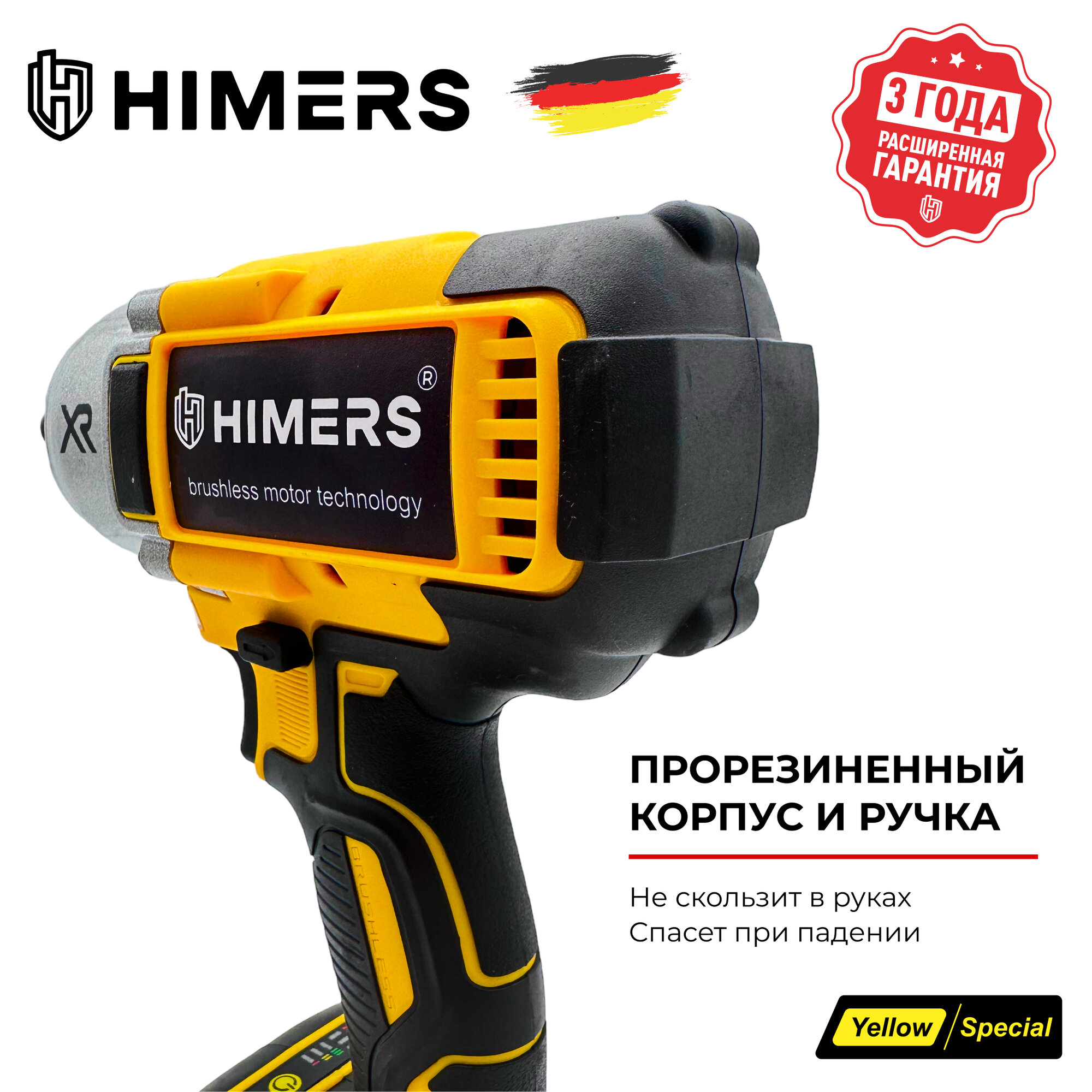370 Н.М. Ударный бесщеточный гайковерт HIMERS DMT370Y аккумуляторный 24V, 2 АКБ по 6 А.ч., Версия Yellow special / Кейс / для закручивания 24в, квадрат 1/2 + винтоверт под биту