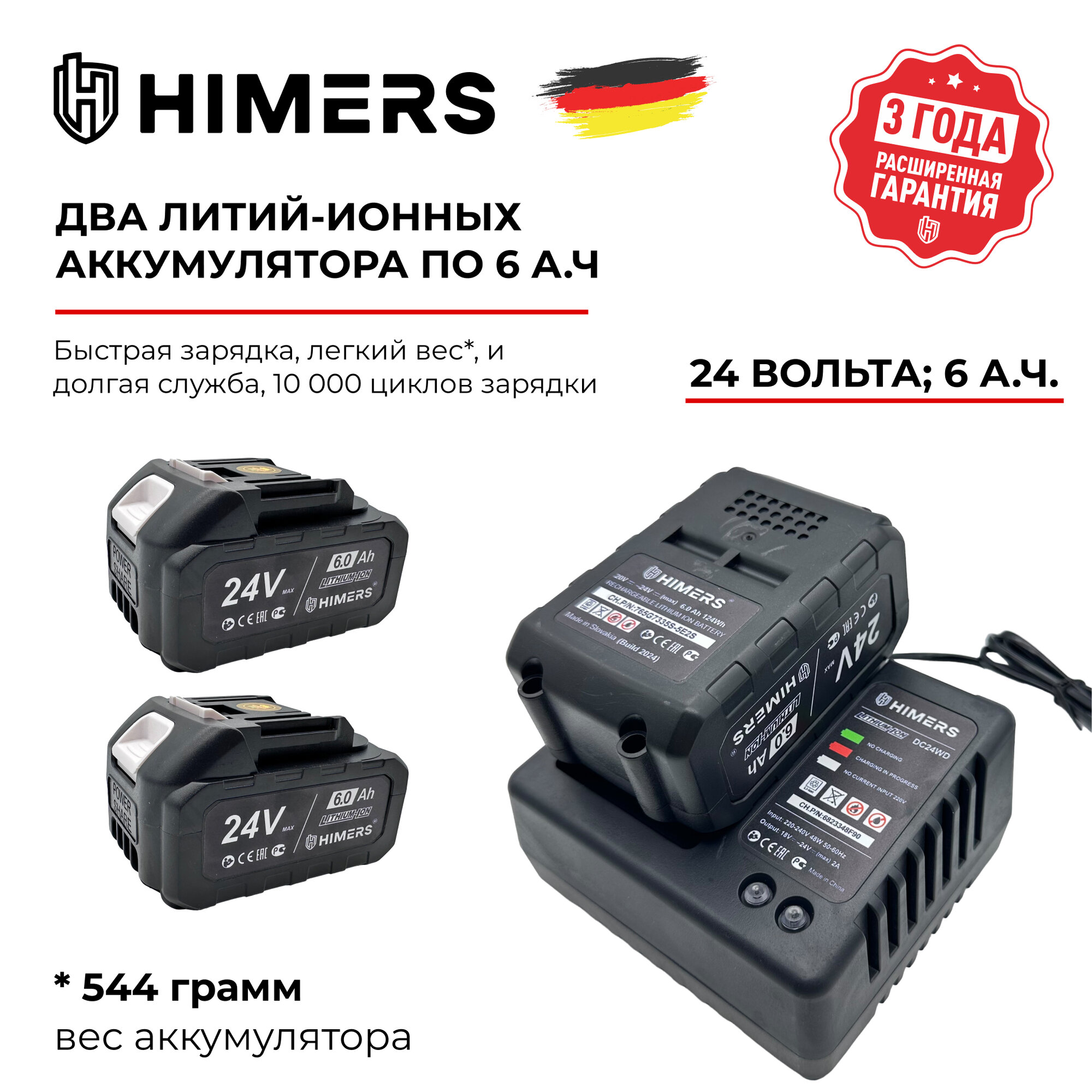 350 Н.М. Ударный бесщеточный гайковерт HIMERS DMT350B аккумуляторный 24V, 2 АКБ по 6 А.ч., Кейс / для закручивания, 24в, квадрат 1/2 + винтоверт под биту