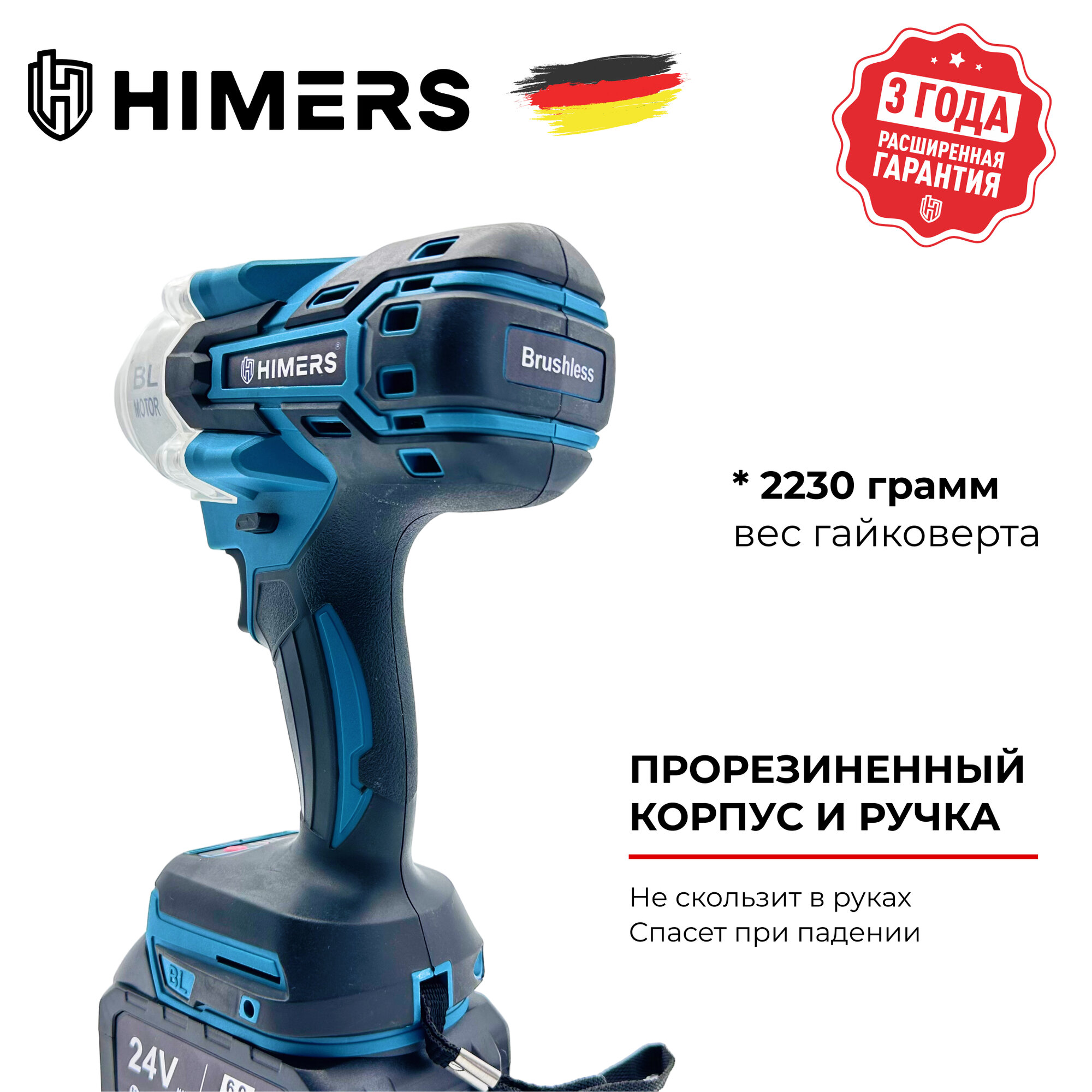420 Н.М. Ударный бесщеточный гайковерт HIMERS DMT420B аккумуляторный 24V, 2 АКБ по 6 А.ч., 420 Н.м., / Кейс / для закручивания, 24в, квадрат 1/2