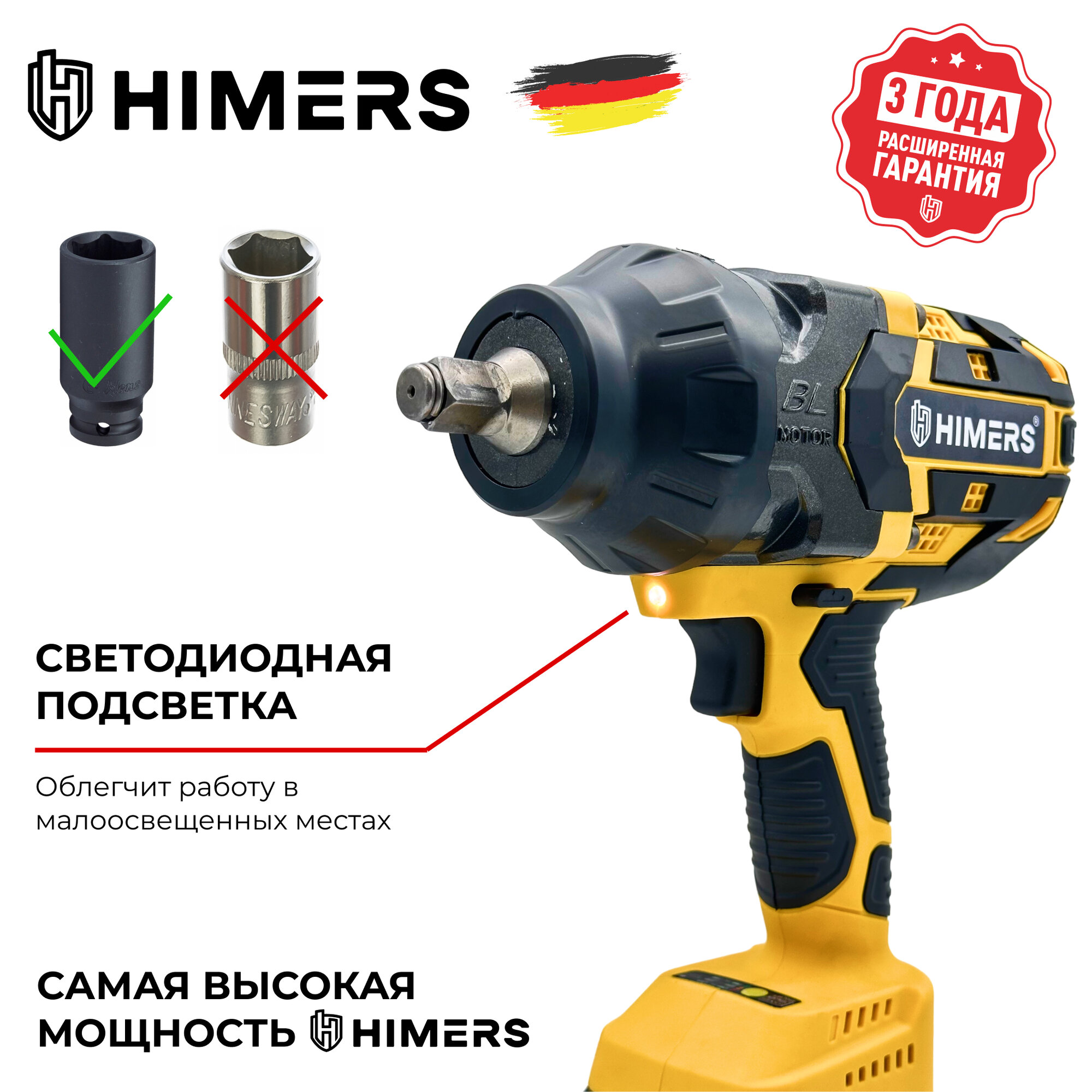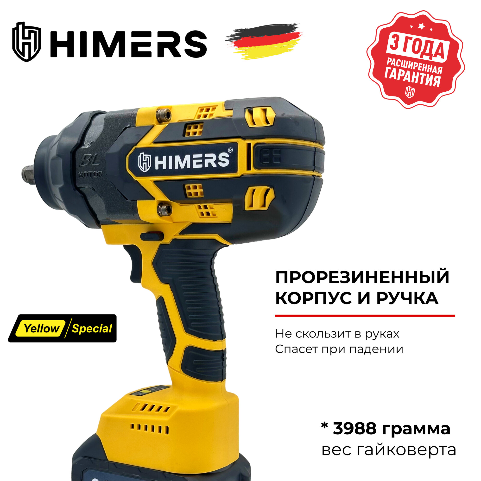 930 Н.М. Ударный бесщеточный гайковерт HIMERS DMT930Y аккумуляторный 24V, 2 АКБ по 6 А.ч., Версия Yellow special / Кейс / для закручивания 24в винтоверт