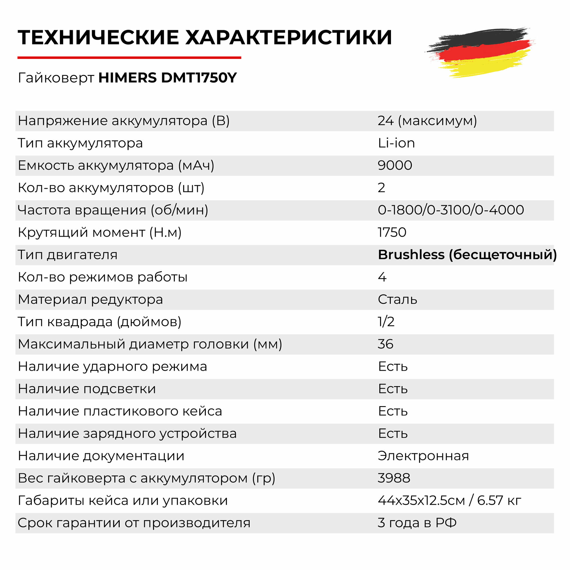 890 Н.М. Ударный бесщеточный гайковерт HIMERS DMT890B аккумуляторный 24V, 2 АКБ по 6 А.ч., Кейс / для закручивания, 24в, квадрат 1/2