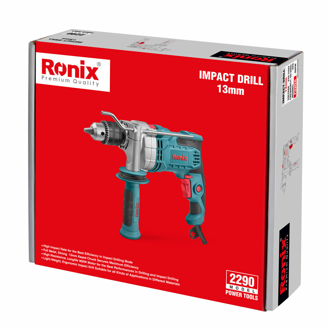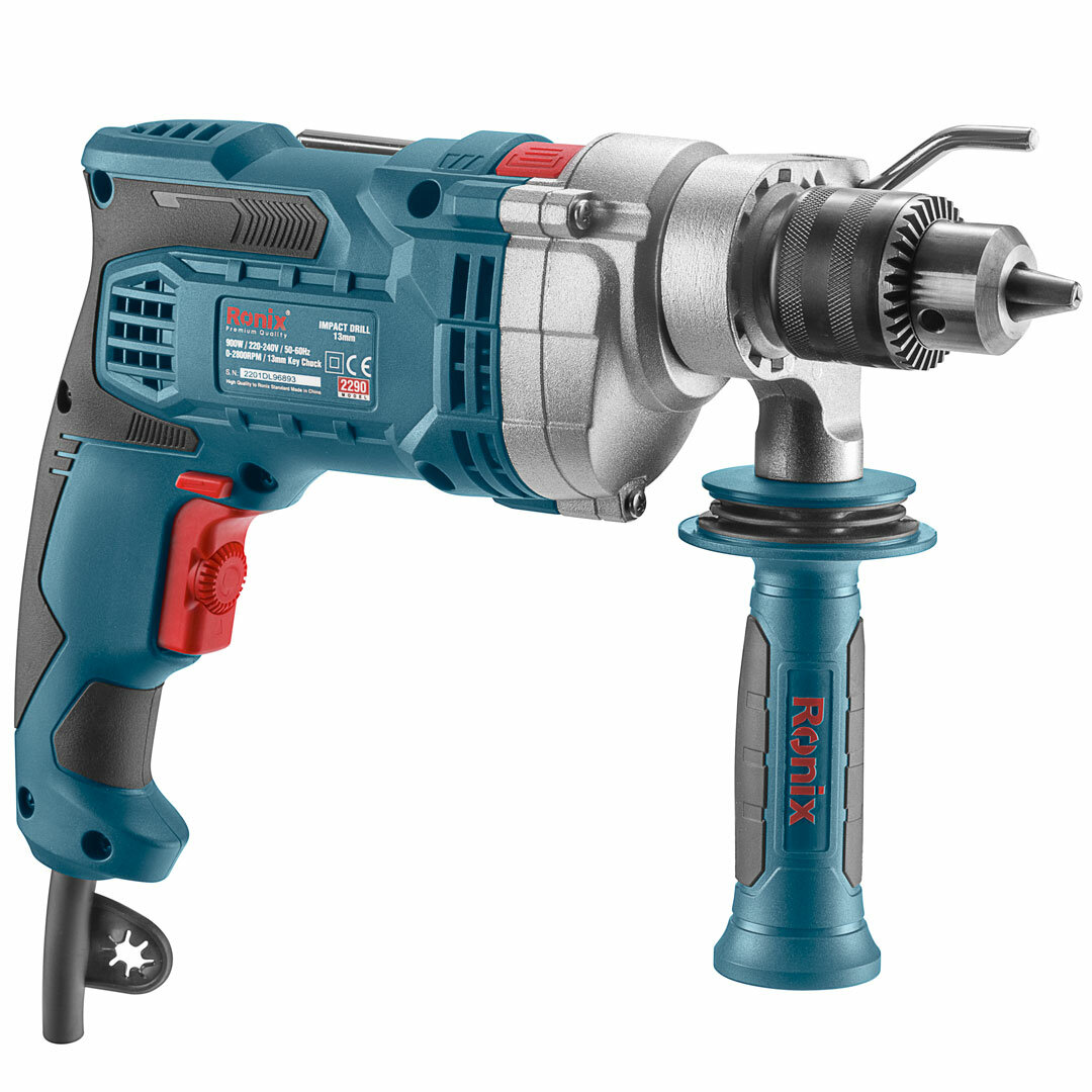 Купить Сетевая ударная дрель Ronix 900Вт с металлическим редуктором 2800 оборотов в минуту угольные щетки+ключ