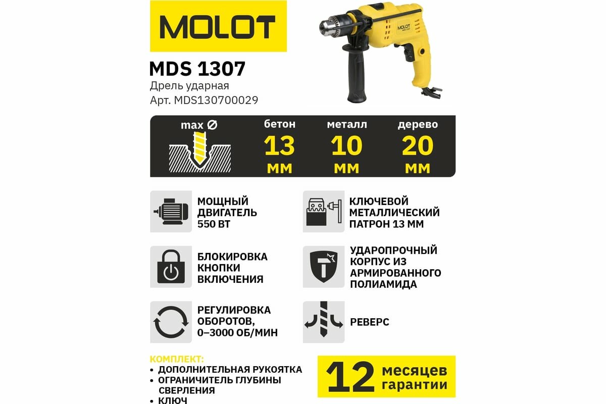 Ударная дрель MOLOT MDS 1307 MDS130700029 интересное: