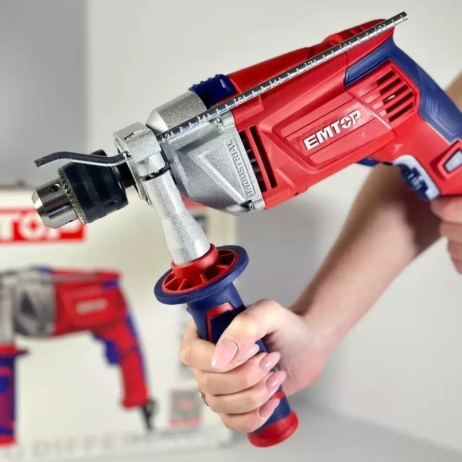 Электрическая ударная дрель 850 Вт EMTOP ключевой патрон 13 мм измерительная шкала глубины сверления+дополнительная рукоятка