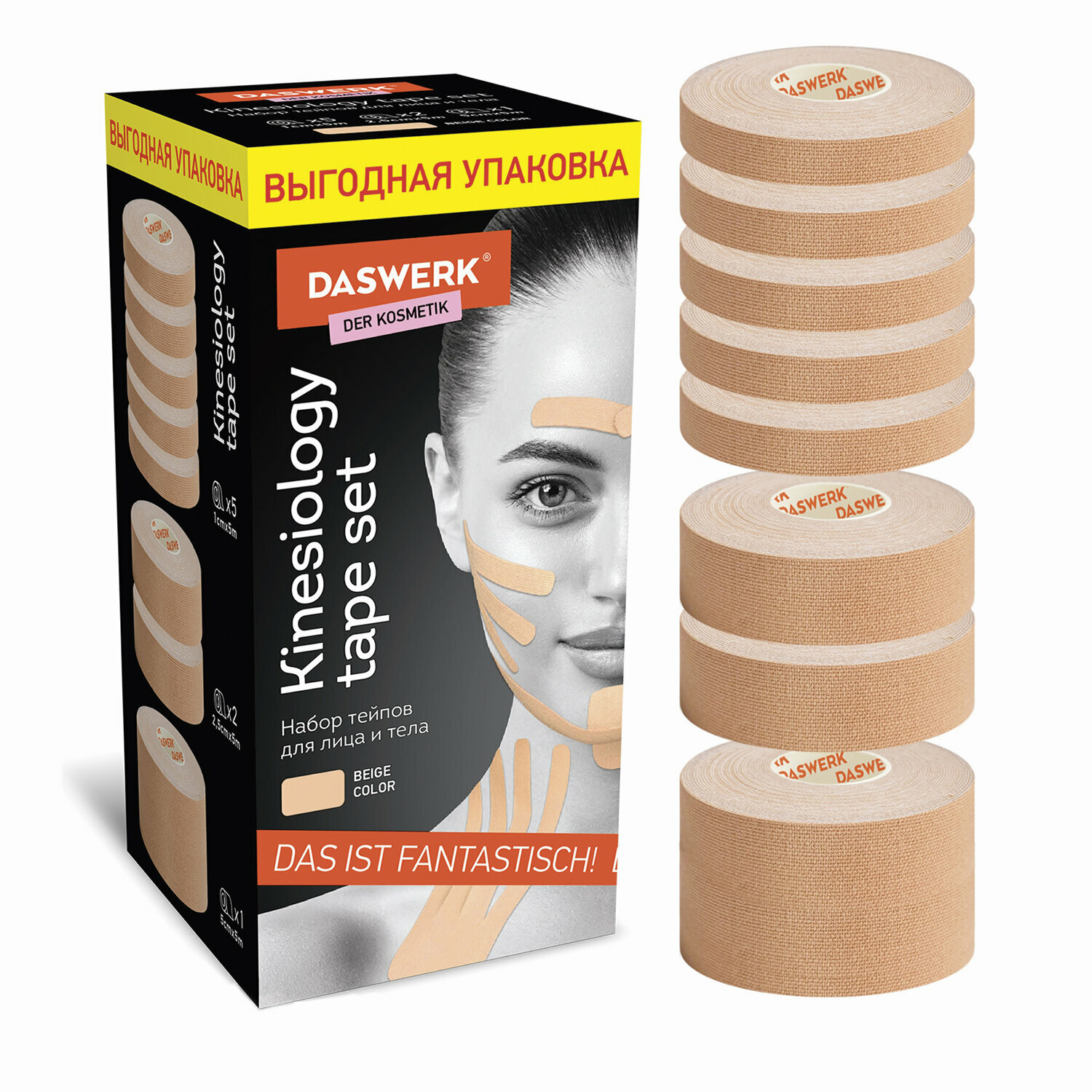 Купить Кинезио тейп для лица и тела набор 8 рулонов по 5 м, лифтинг-эффект, ширина 1/2, 5/5 см, DASWERK, 680008, в комплекте 1 наб.
