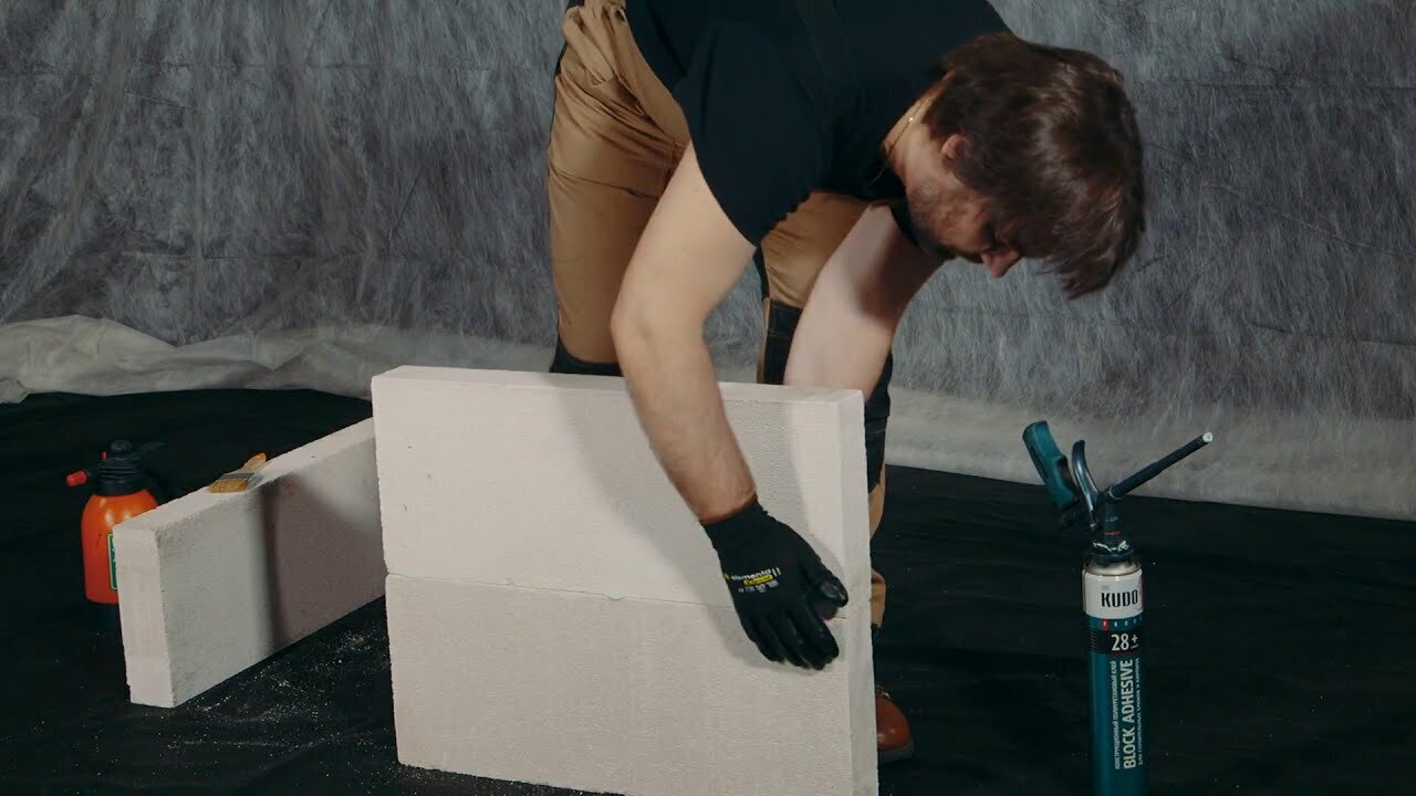 Клей-пена для строительных блоков и кирпича KUDO BLOCK ADHESIV PROFF 28+ профессиональный всесезонный1000мл, 3шт
