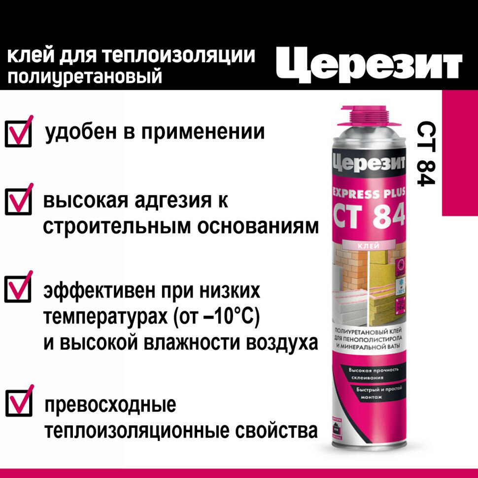Клей Ceresit CT 84 Express Plus для теплоизоляции 800 мл интересное: