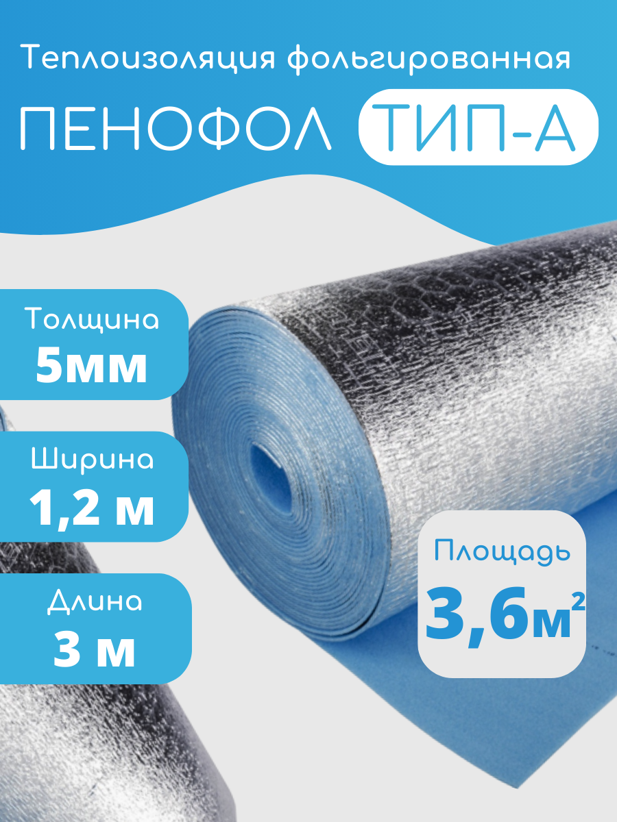 Утеплитель фольгированный Пенофол 2000 А, 5мм, 1,2*3м (3.6 кв.м), односторонний интересное: