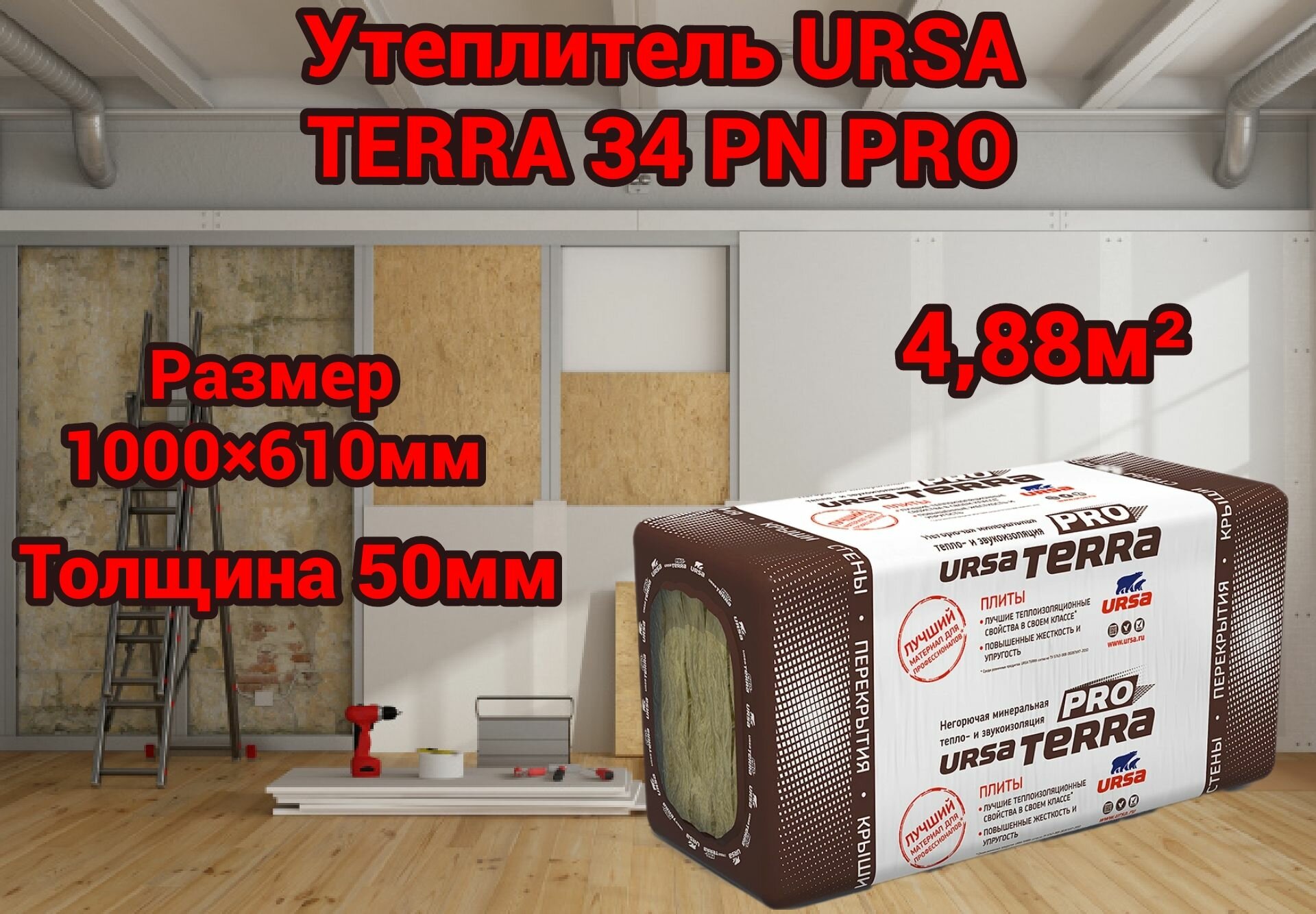 Минеральный утеплитель для стен и крыши URSA TERRA 34 PN PRO 50 мм 4,88 м2. интересное: