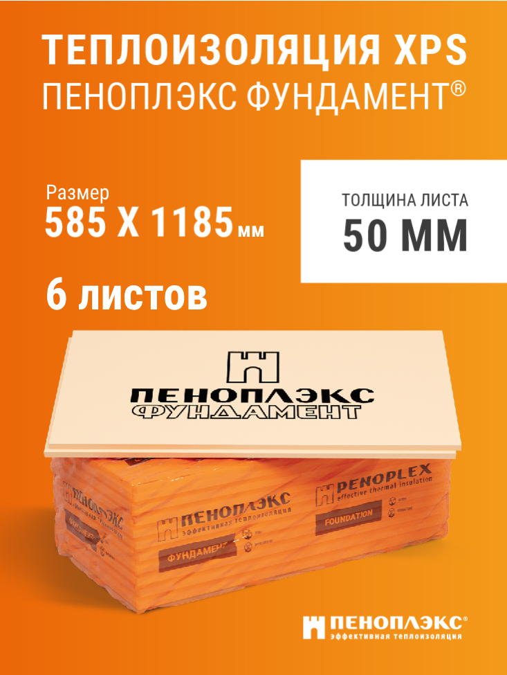 Пеноплэкс 50мм фундамент 50х585х1185 (3 плиты) 2,07 м2 универсальный утеплитель из экструзионного пенополистирола