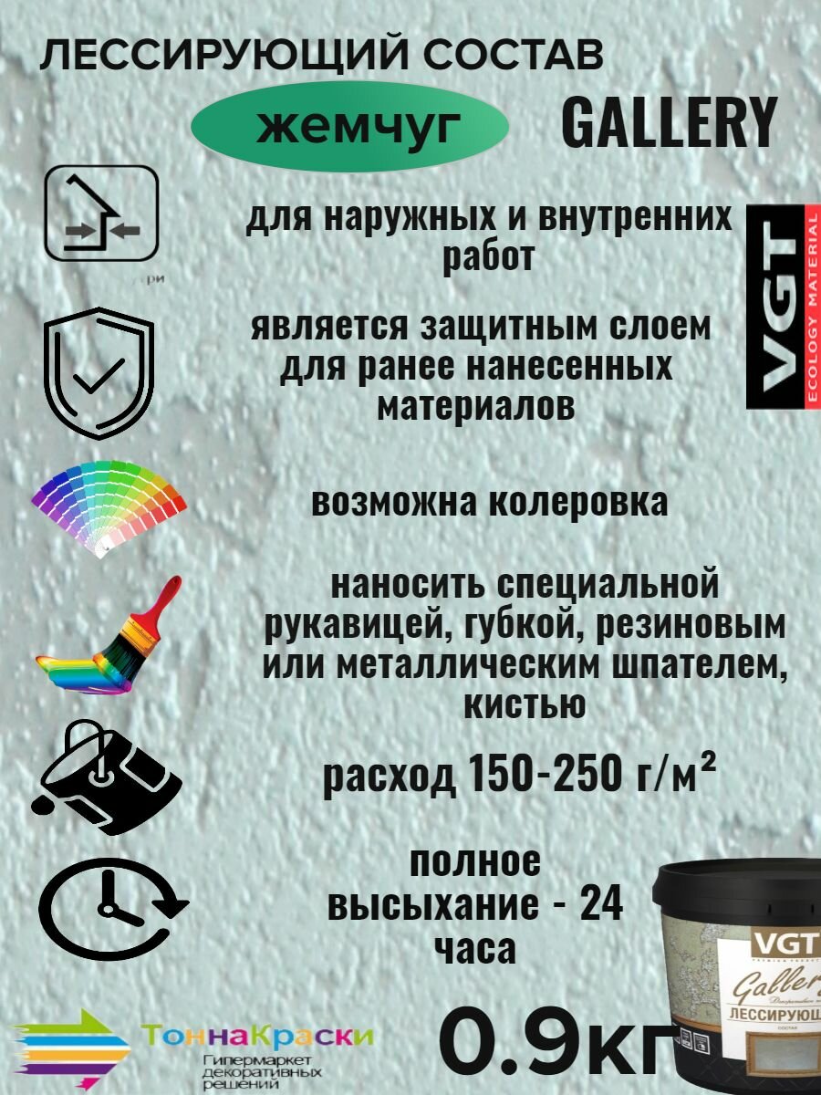 VGT GALLERY лессирующий состав полупрозрачный для декоративных штукатурок, жемчуг (0,9кг)