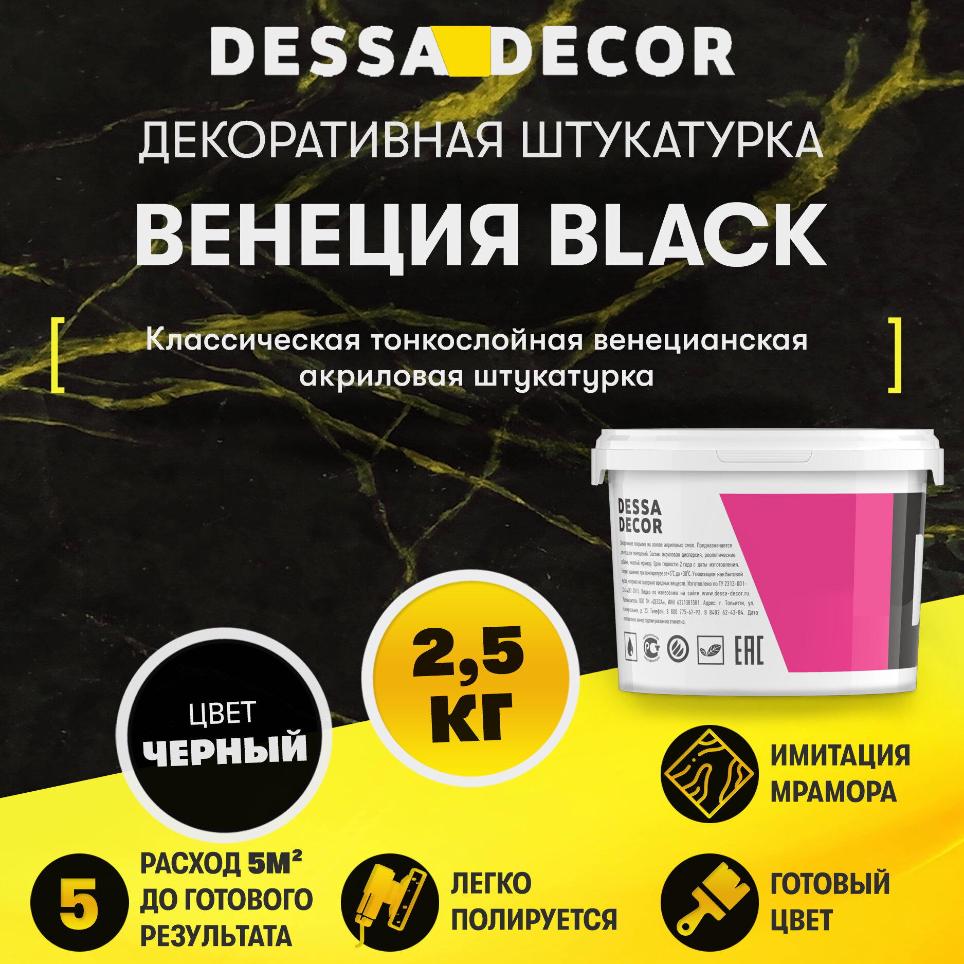 Купить Декоративная штукатурка DESSA DECOR Венеция Black 2.5 кг, венецианская штукатурка для стен для имитации полированного мрамора и декора