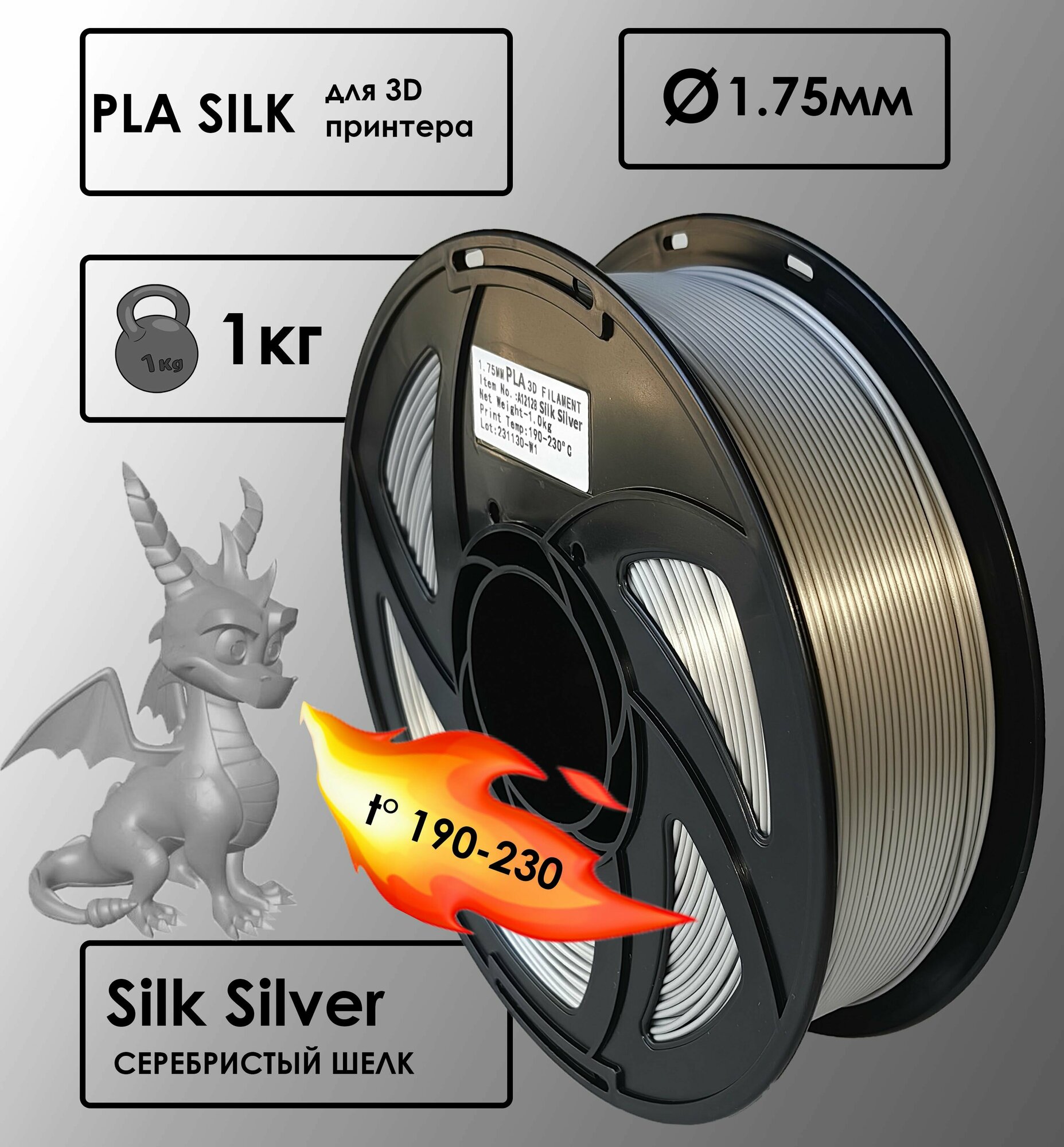 Купить PLA Цвет Серебристый Шелковый Пластик для 3D-принтера