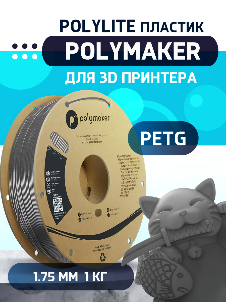 СохранитьPETG Polylite пластик Polymaker для 3D принтера 1.75 мм, Серый тёмный, 1 кг интересное: