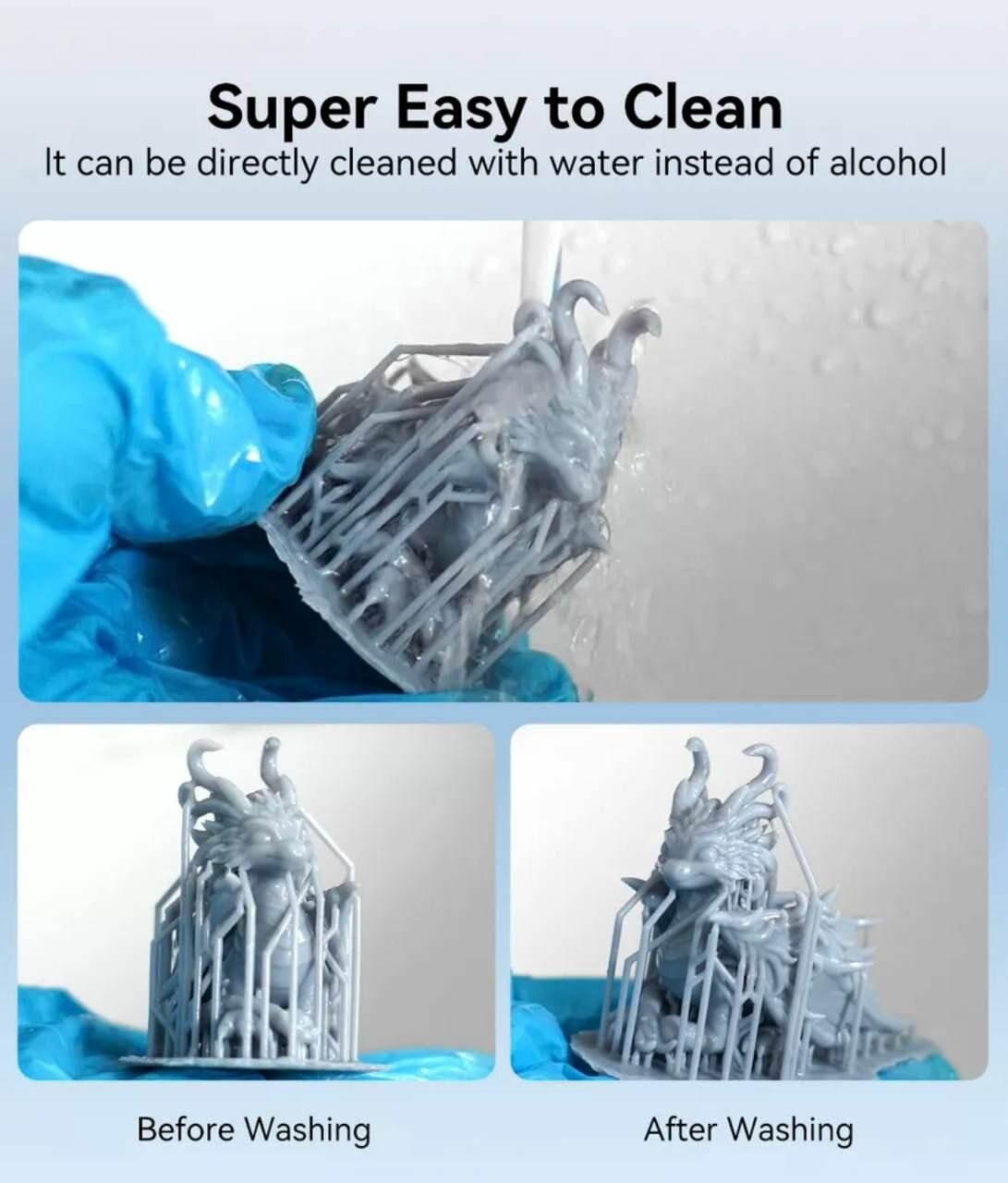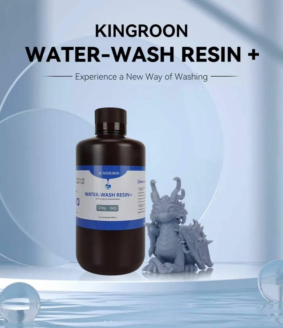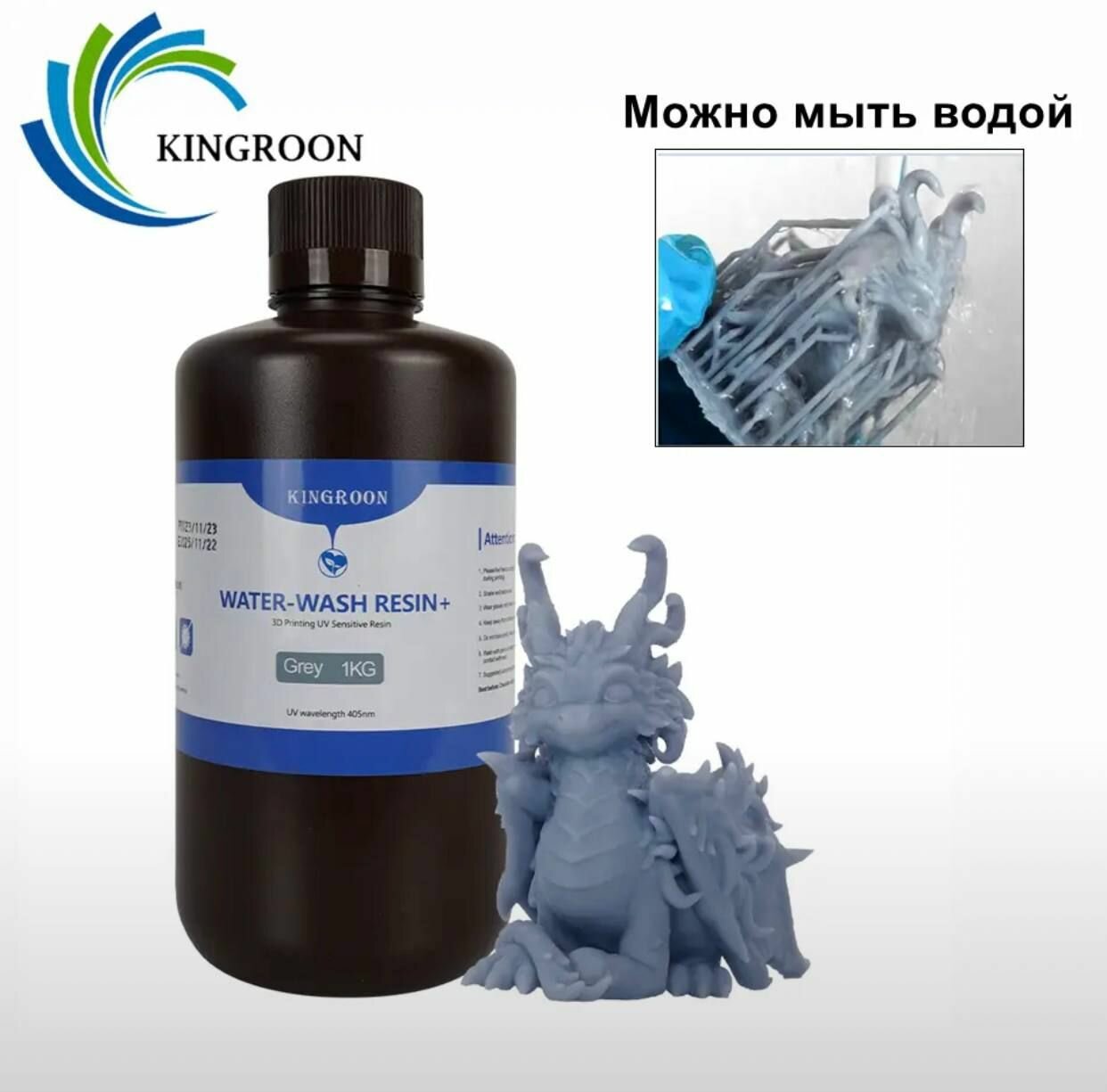 Фотополимерная водосмываемая смола KINGROON для 3D принтера Water-Wash Resin+UV серая (Grey) 1 кг интересное: