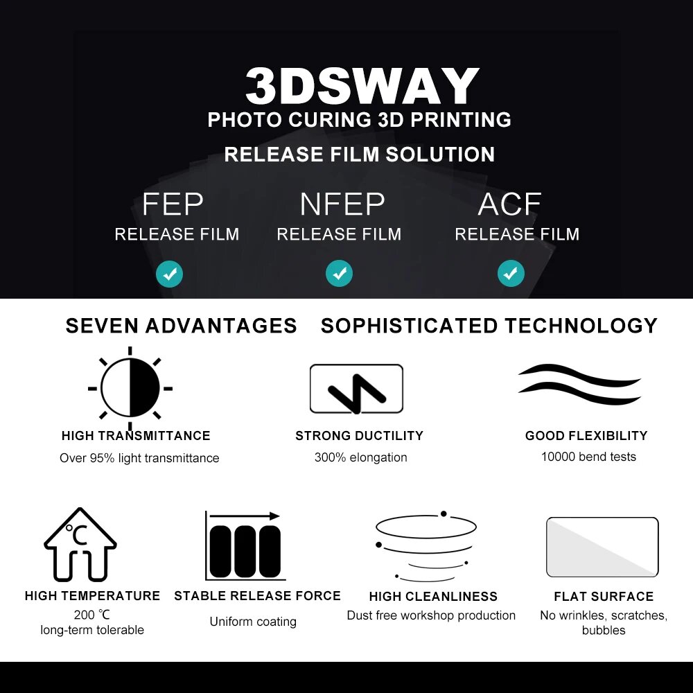 3dsway NFEP выпуск пленки УФ смолы 3D принтер запчасти пленки лист 0,15 мм для ANYCUBIC Photon Mono X Elegoo Saturn CREALITY HALOT интересное: