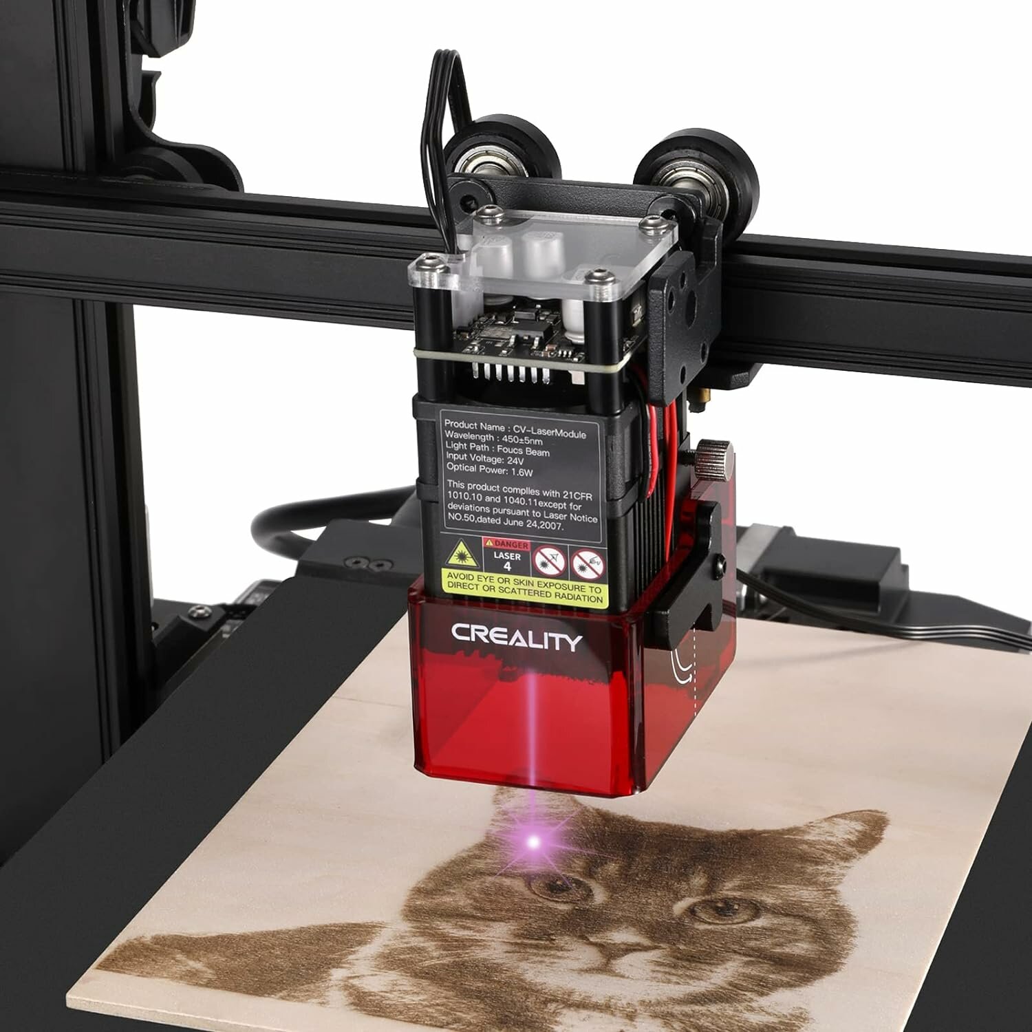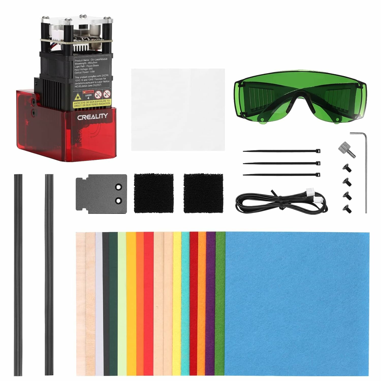 Купить Модуль лазерного гравера для 3D-принтера Creality Ender 3 S1. Насадка для лазерной гравировки 1,6 Вт, 24 В, 450 нм, сине-фиолетовый свет, обновленная защитная крышка и фиксированный фокус, для Ender 3 S1, Ender 3 S1 Pro и Ender 3 S1 Plus.