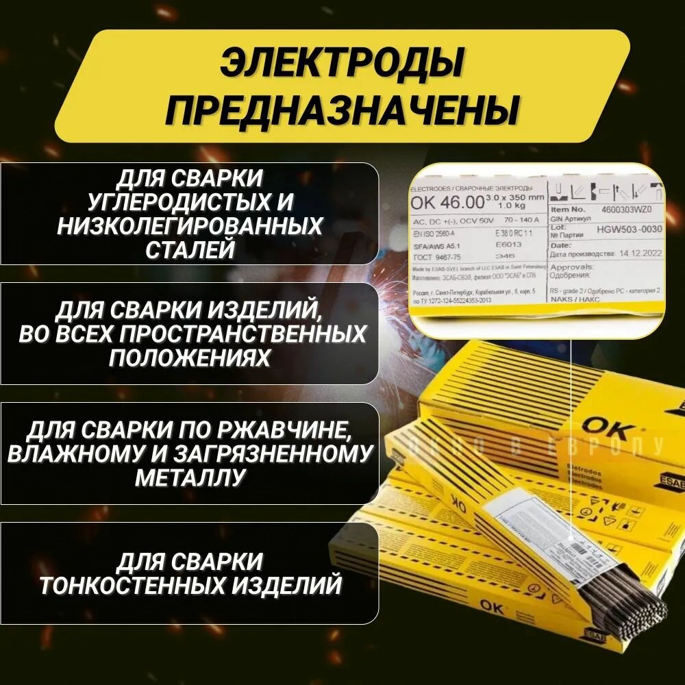ESAB cварочные электроды OK 46 2мм (1кг) / ESAB cварочные электроды OK 46 2,0х300мм (1кг)