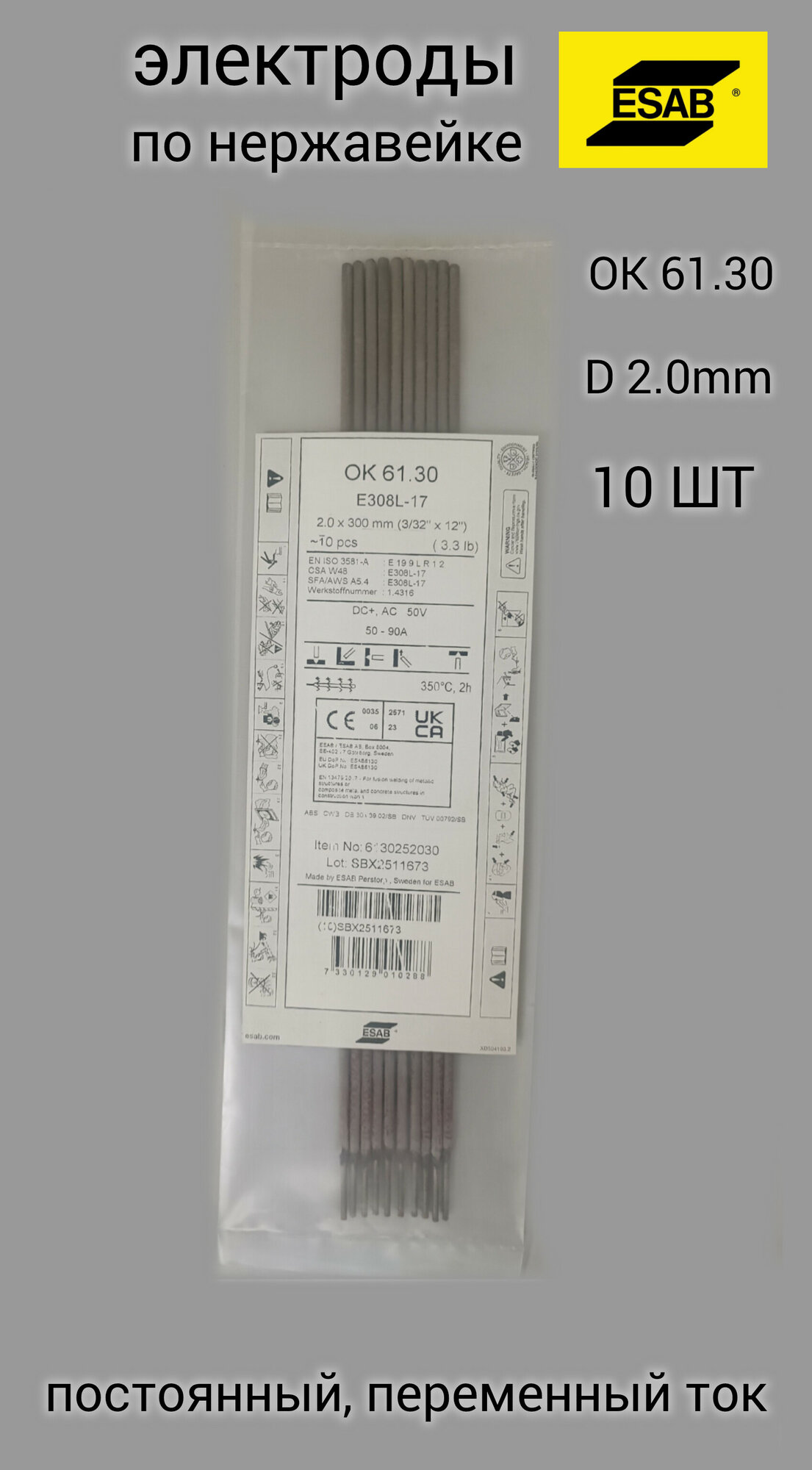 Электроды сварочные по нержавейке ОК 61.30 (пр-ва ESAB Швеция) д.2,0 мм (10шт) интересное: