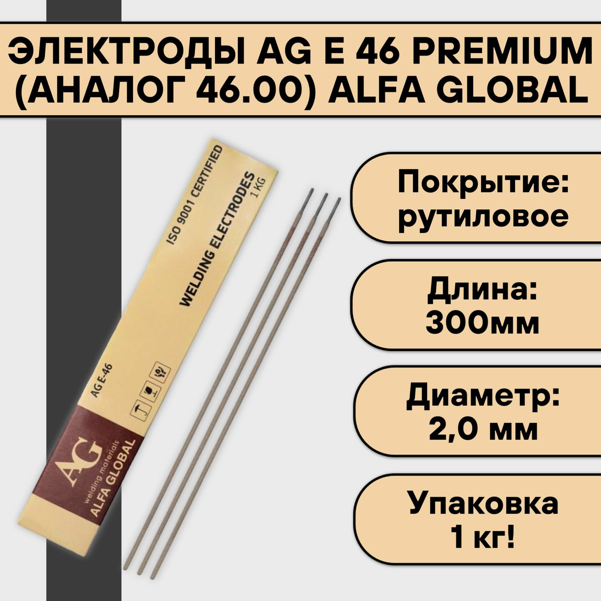 Купить Электроды AG E 46 PREMIUM ф 2,0х300 мм (1 кг) (Аналог 46.00) Alfa Global