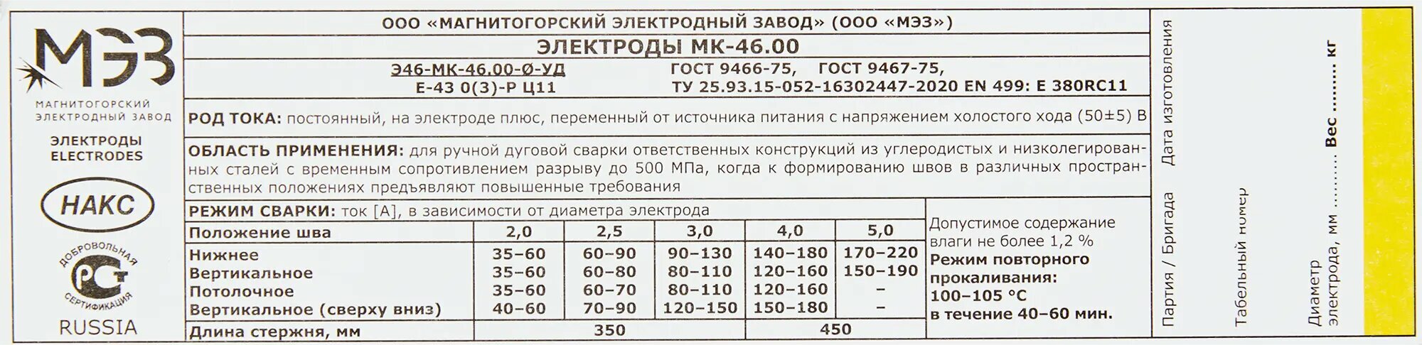 Электрод для ручной дуговой сварки Магнитогорский электродный завод МК-46, 3 мм, 5 кг