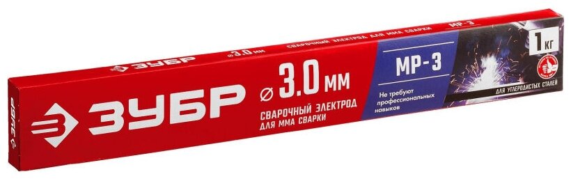 ЗУБР электрод сварочный с рутловым покрытием МР-3, тип Э46, прочность на растяжение не менее 470 МПа, для ММА сварки, d 3.0 мм, 1 кг., (40011-3.0)