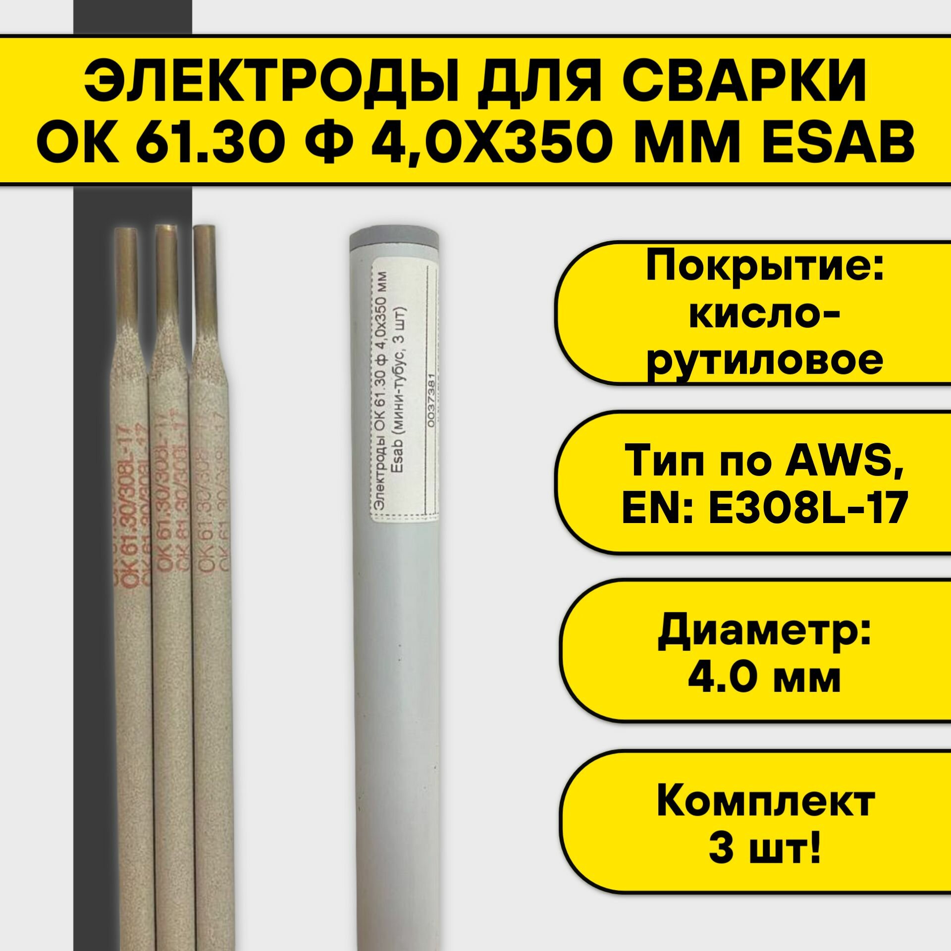 Электроды для сварки ОК 61.30 ф 4,0х350 мм Esab (мини-тубус, 3 шт) интересное: