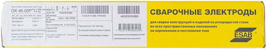 Электроды сварочные ESAB OK 46.00 ф3 (пачка 4 кг) 4600303WB0 интересное: