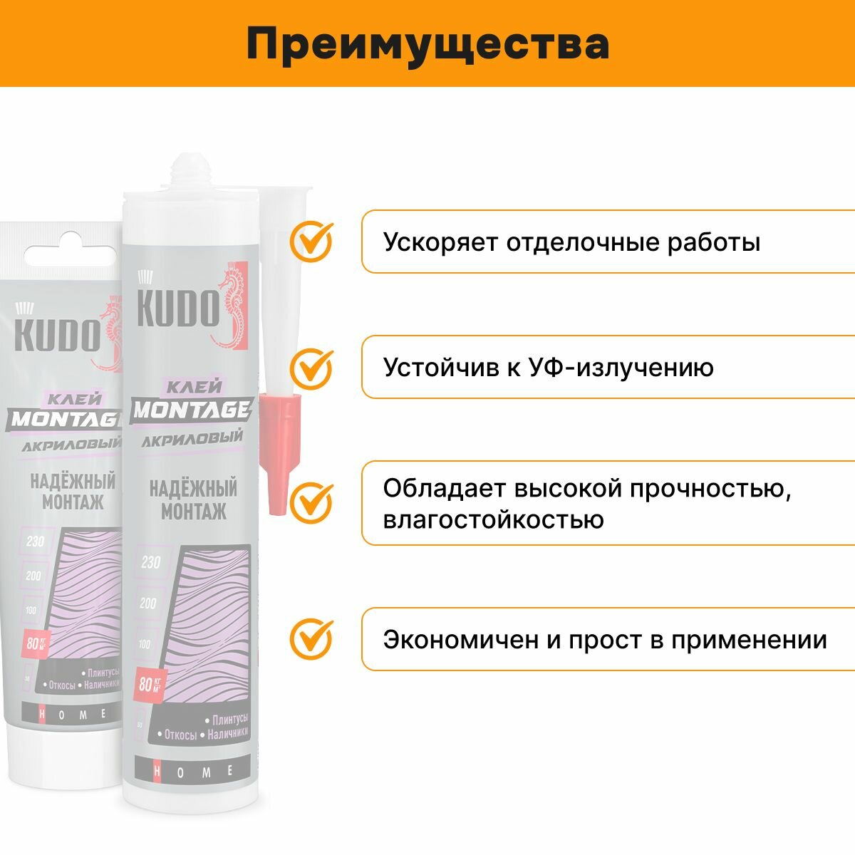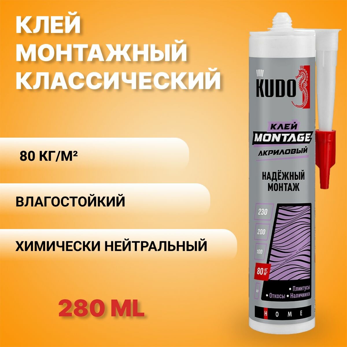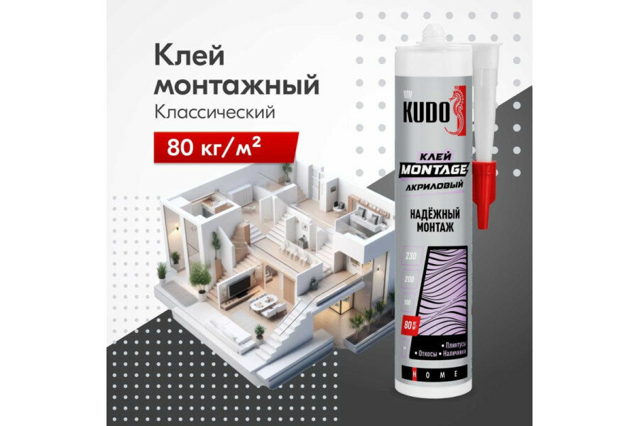 Клей "жидкие гвозди" KUDO MONTAGE для надёжного монтажа на акриловой основе, белый, 280 мл, KBK-321 интересное: