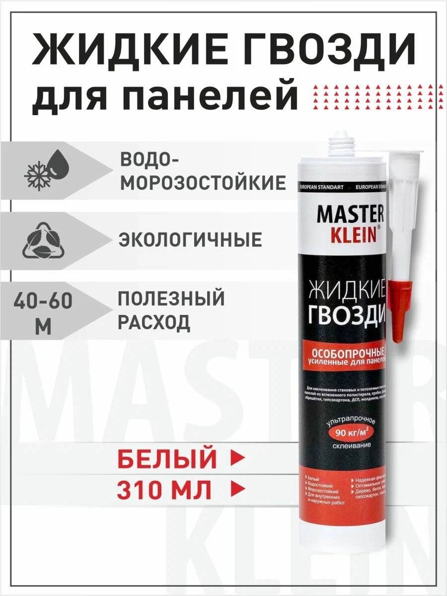 Особопрочные жидкие гвозди для панелей Master Klein белые, картридж 310 мл
