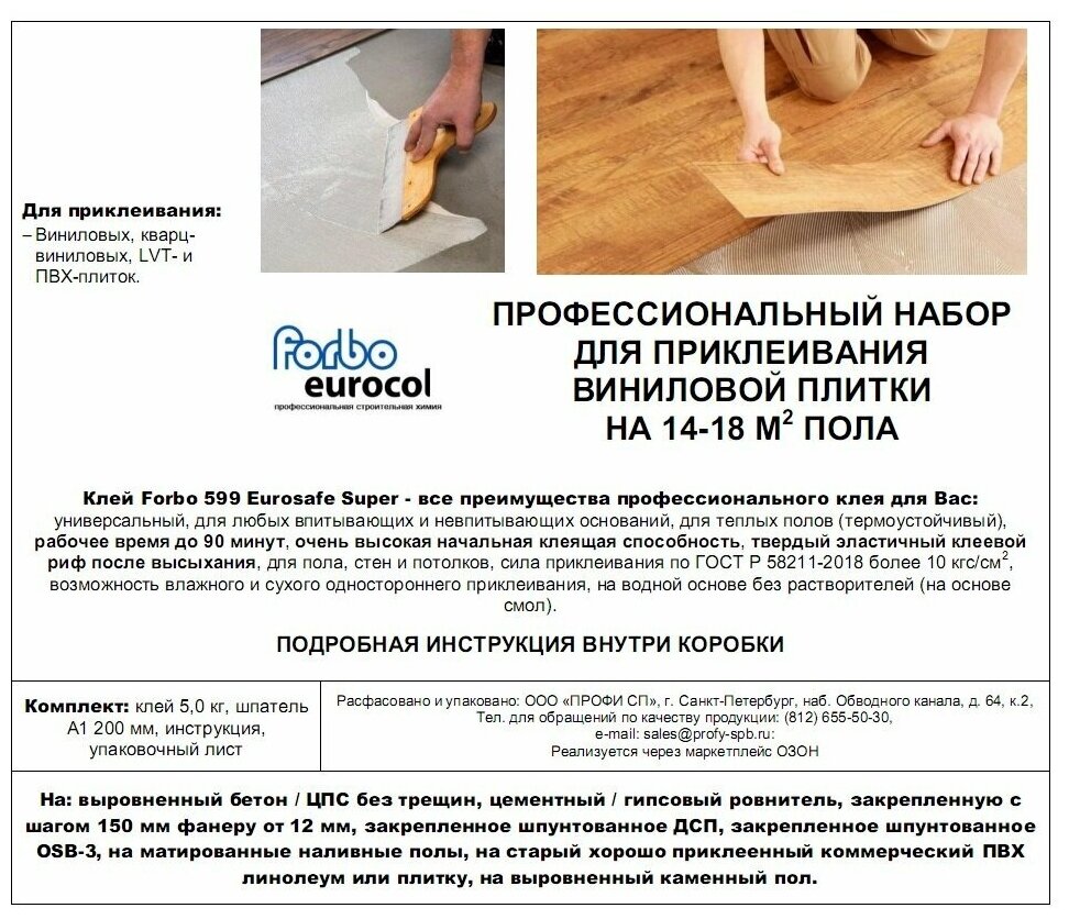 Профессиональный набор для укладки виниловой ПВХ плитки с клеем forbo 599, 5 кг + шпатель А1 интересное:
