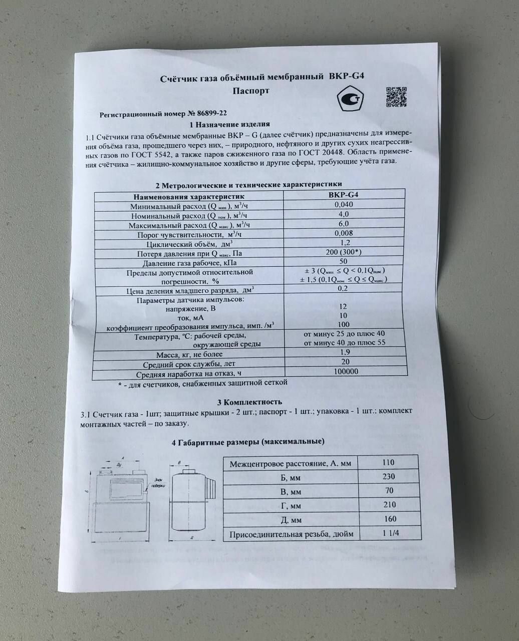 Счетчик газа ВКР G4 правый 2024г интересное: