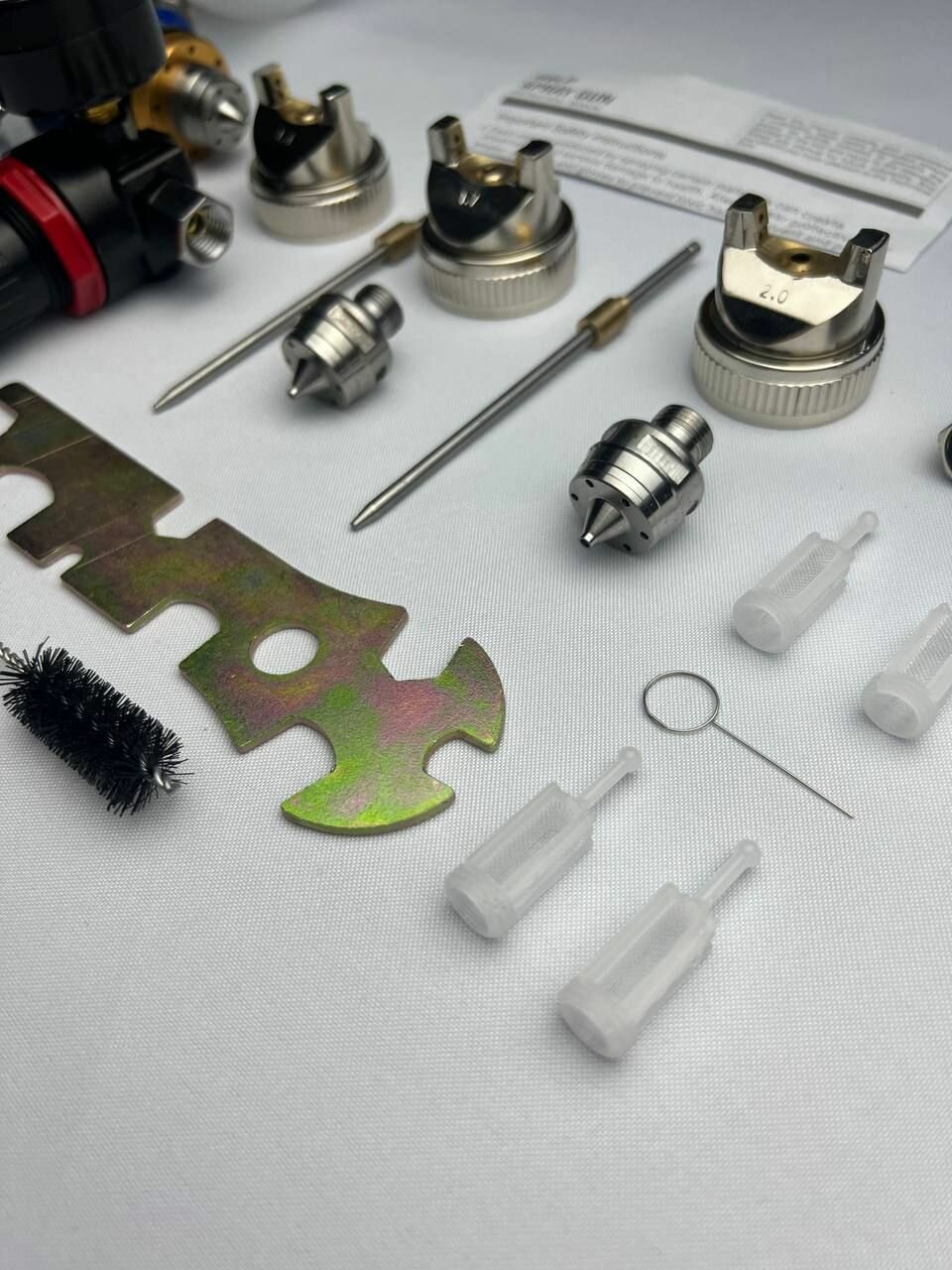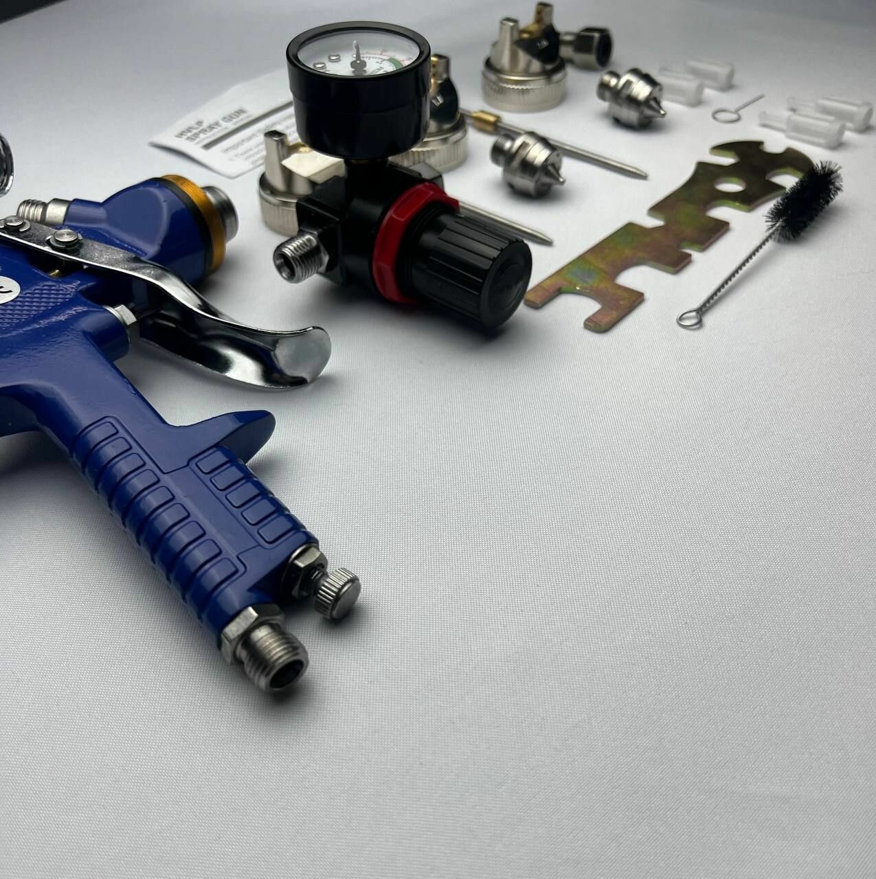 Краскопульт пневматический с регулятором давления и с 3-мя дюзами: 1.4 мм, 1.7мм, 2.0мм интересное: