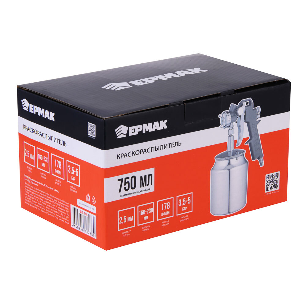Краскораспылитель, 0,75л, сопло 2.5 мм, 3,5- 5 бар, 178 л/мин интересное: