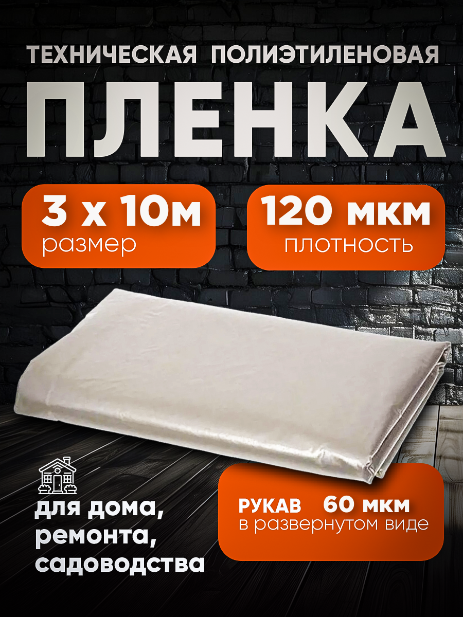 Техническая пленка полиэтиленовая 3х10м 120мкм для дома, для ремонта, для садоводства интересное: