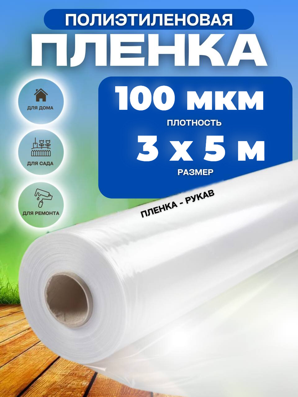 Пленка укрывная полиэтиленовая толщина прочная 100мкм размер 3х5м