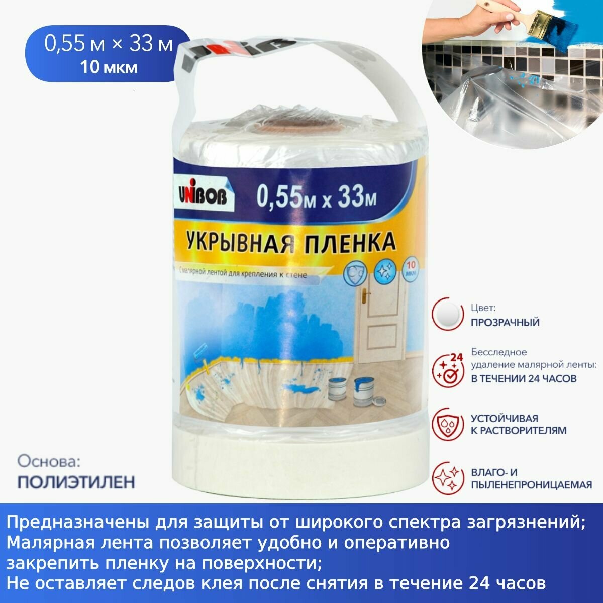 Пленка защитная Unibob, с малярной лентой, 0,55 x 33 м