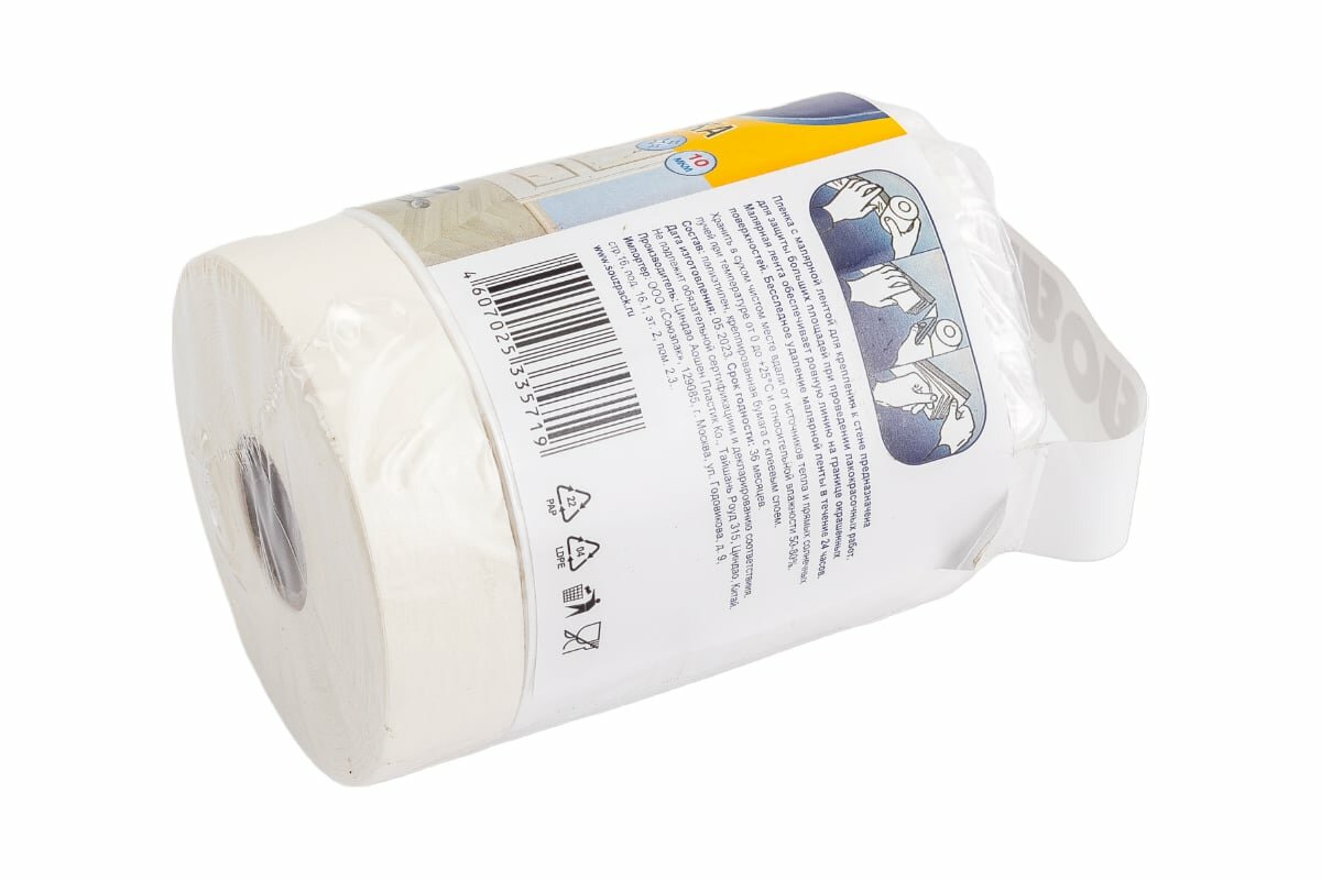 | Дополнительная информация | наличие малярной ленты позволяет удобно и оперативно закрепить плёнку на поверхности; не оставляет следов клея после снятия в течение 24 часов |