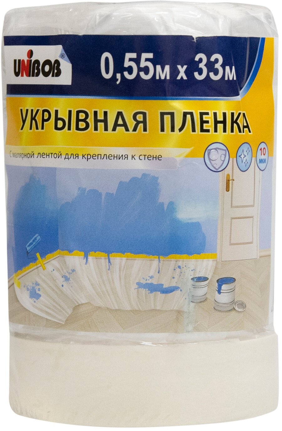 Купить Пленка укрывная UNIBOB 0,55х33 м, с малярной лентой, полиэтилен (38221)