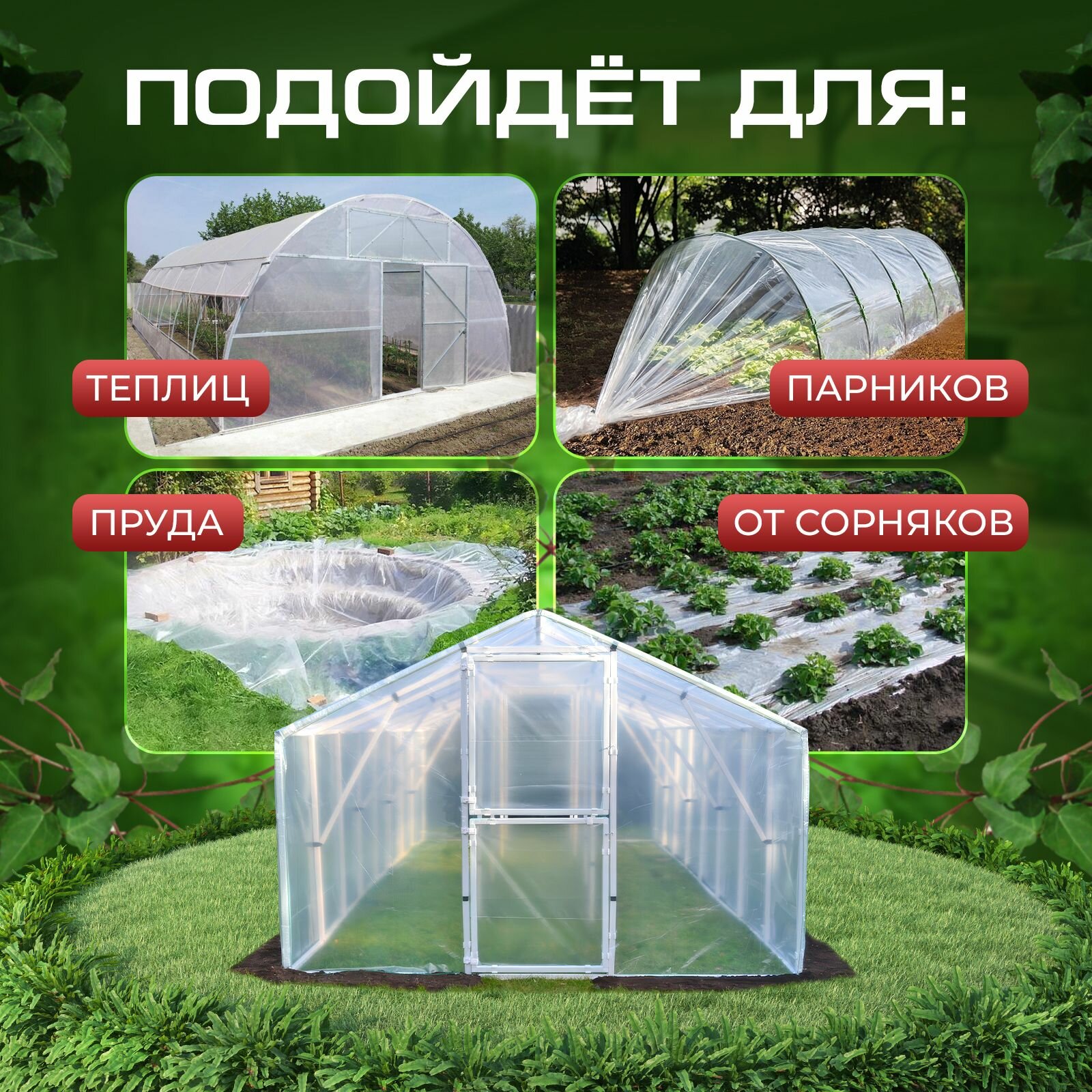 Пленка укрывная для ремонта, теплиц, парников, мебели, строительная, полиэтиленовая прозрачная Высший сорт 60 мкм, 3м х 10м Парников интересное: