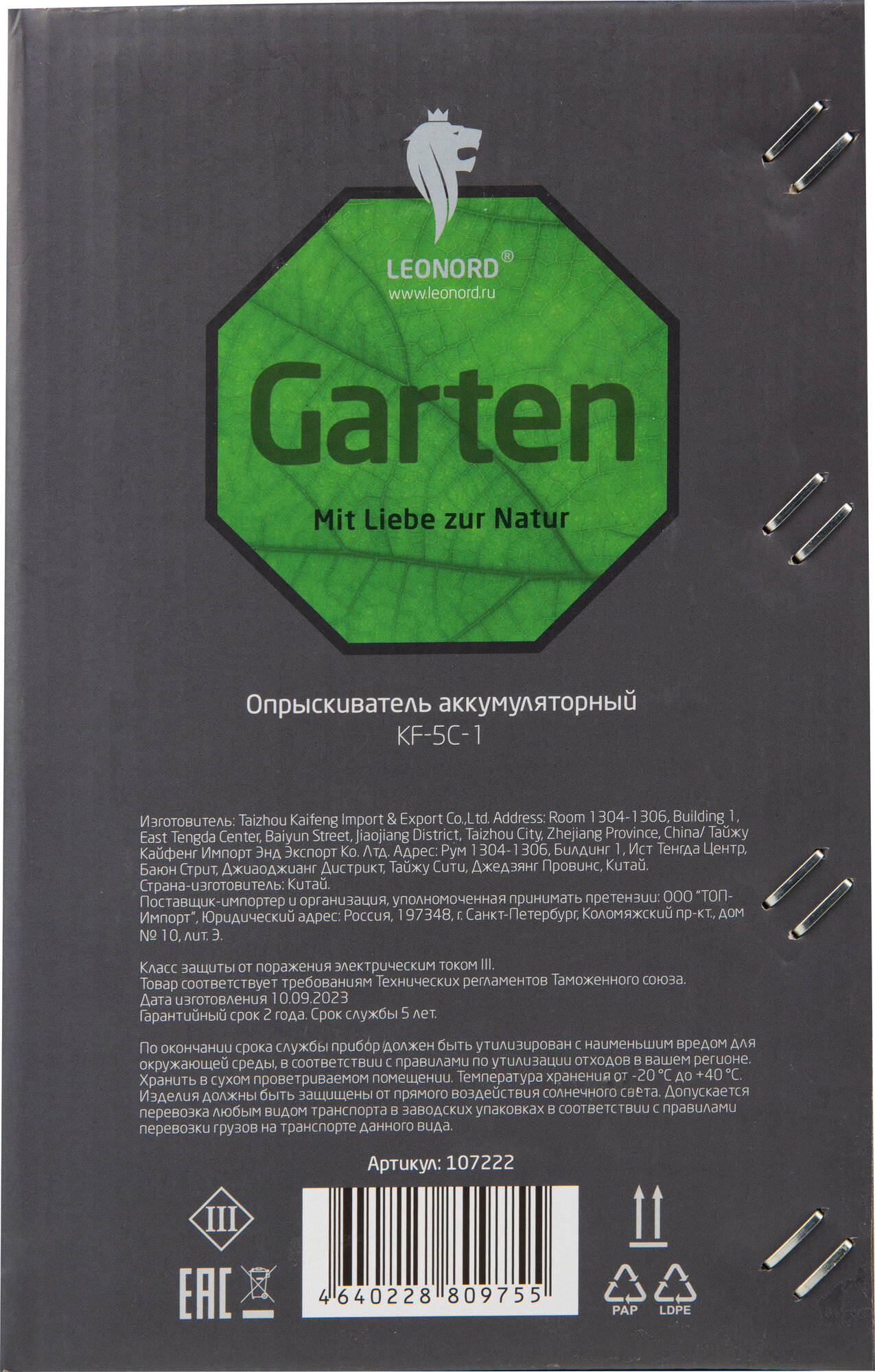 Опрыскиватель аккумуляторный 5,0л KF-5C -1 интересное: