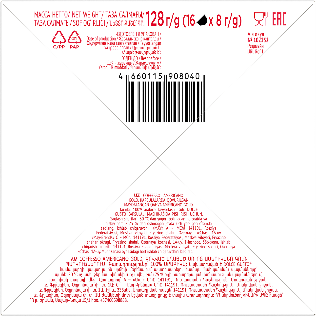 Кофе Coffesso "Americano Gold" 0.384кг/128г капсула URL интересное: