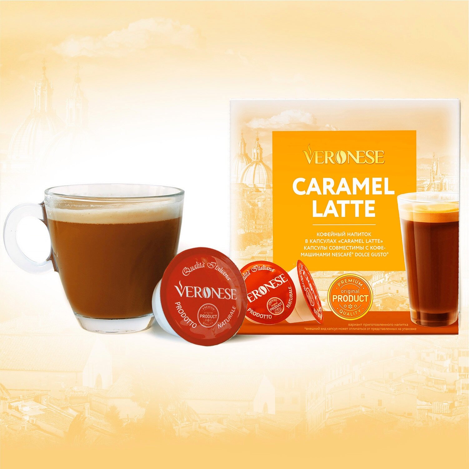 Купить Кофейный напиток в капсулах Veronese CARAMEL LATTE (капсулы для кофемашин Dolce Gusto)