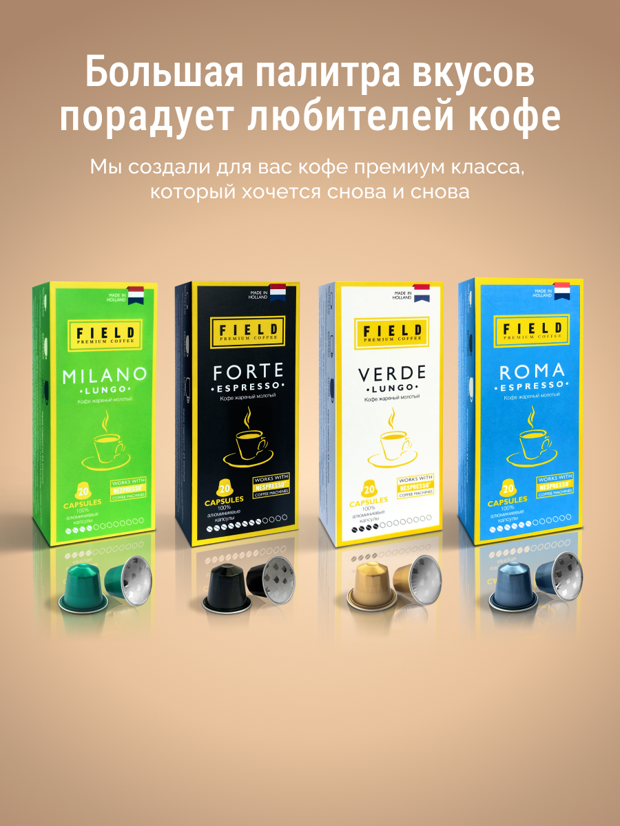 Кофе в капсулах FIELD "Milano Lungo" для кофемашин Nespresso, 20 порций, нидерланды, ш/к 70003