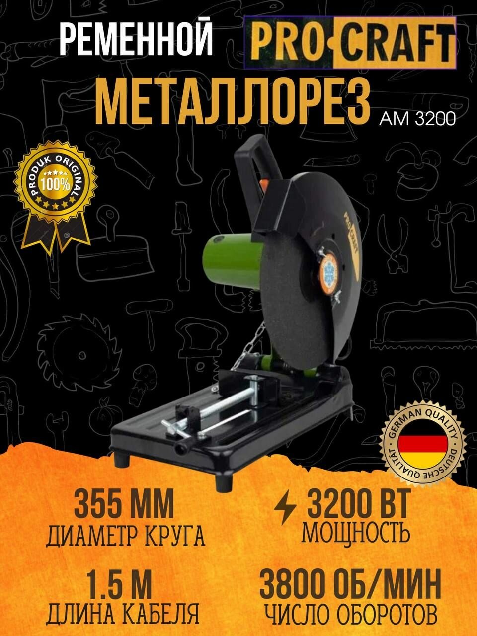 Купить Металлорез, Пила монтажная PROCRAFT AM 3200 под абразивный диск 305/355мм, 3200Вт, 3800об/мин