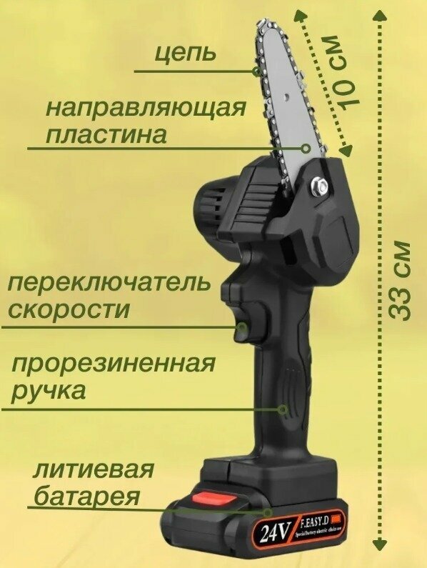 Пила аккумуляторная цепная 24Вт один аккумулятор Li-ion 2000 mAH