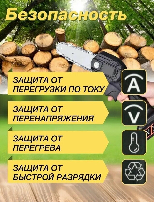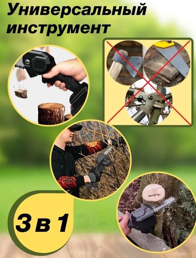 Портативная электропила цепная 550 Вт, 1500 мАч / Ручная Аккумуляторная 4-дюймовая Мини Пила интересное: