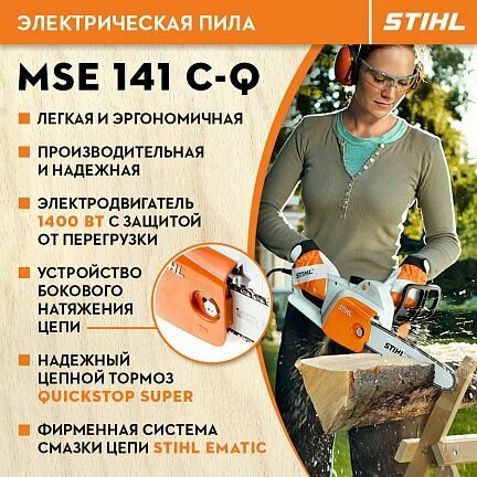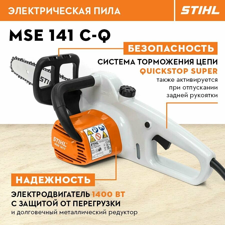Электропила цепная электрическая штиль STIHL оригинал MSE 141 C-Q шина R 35 см/14" цепь 61 PMM3 интересное: